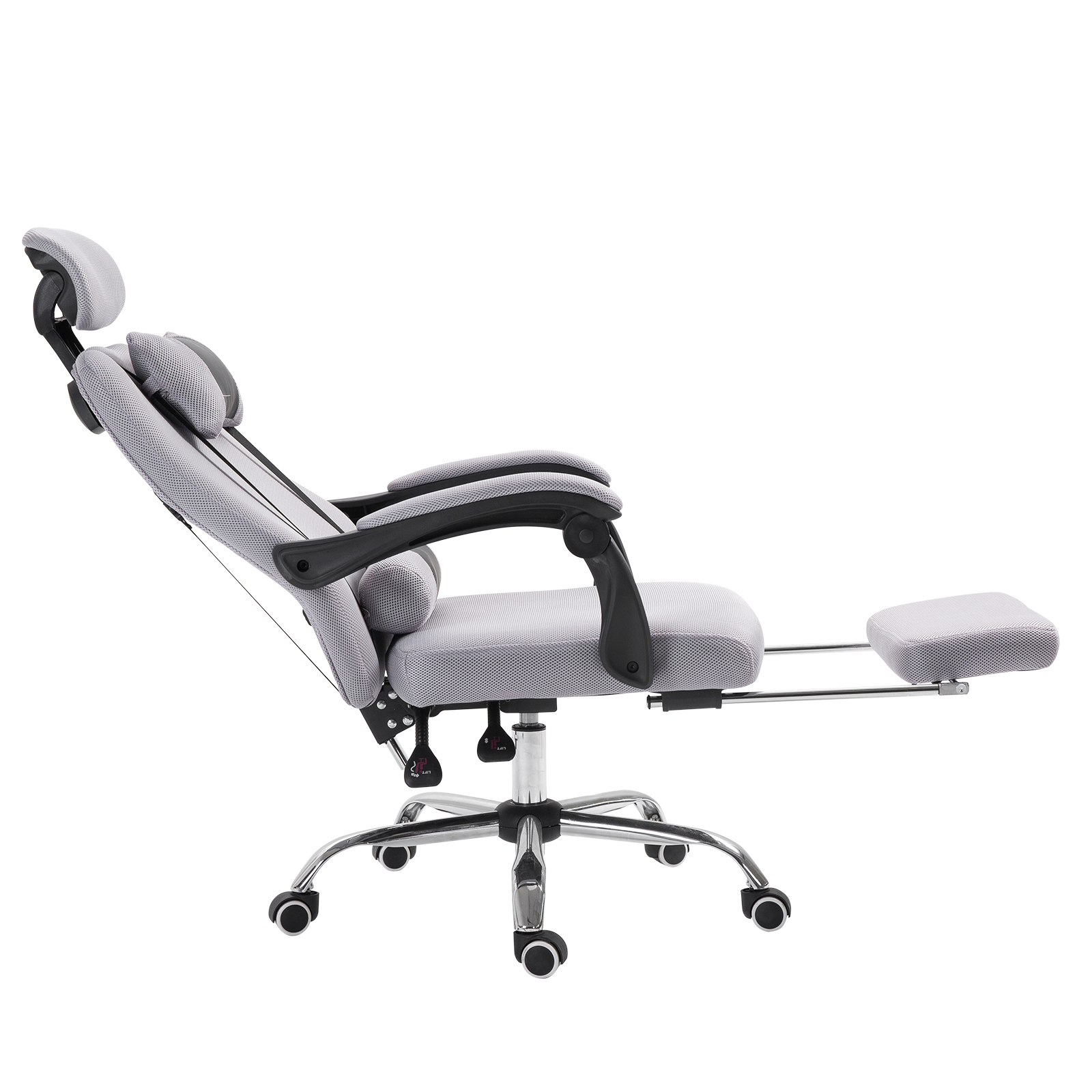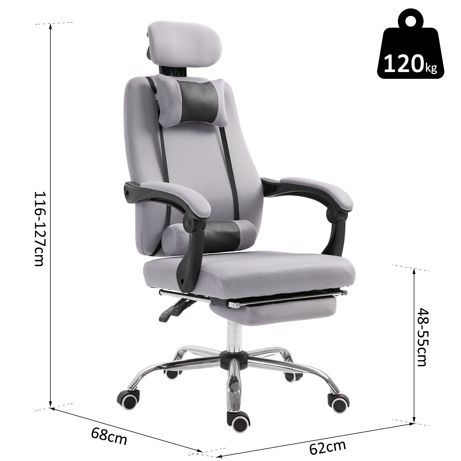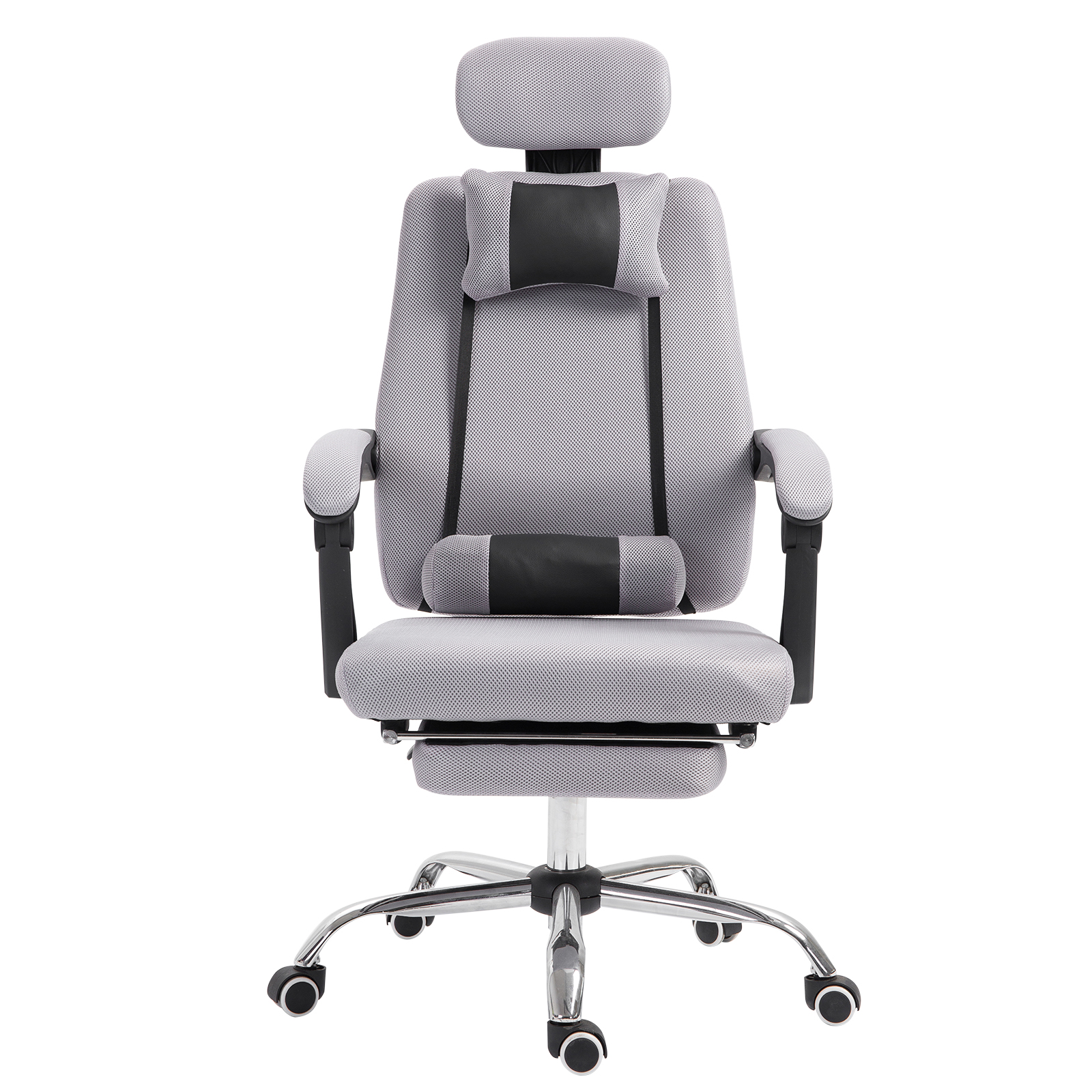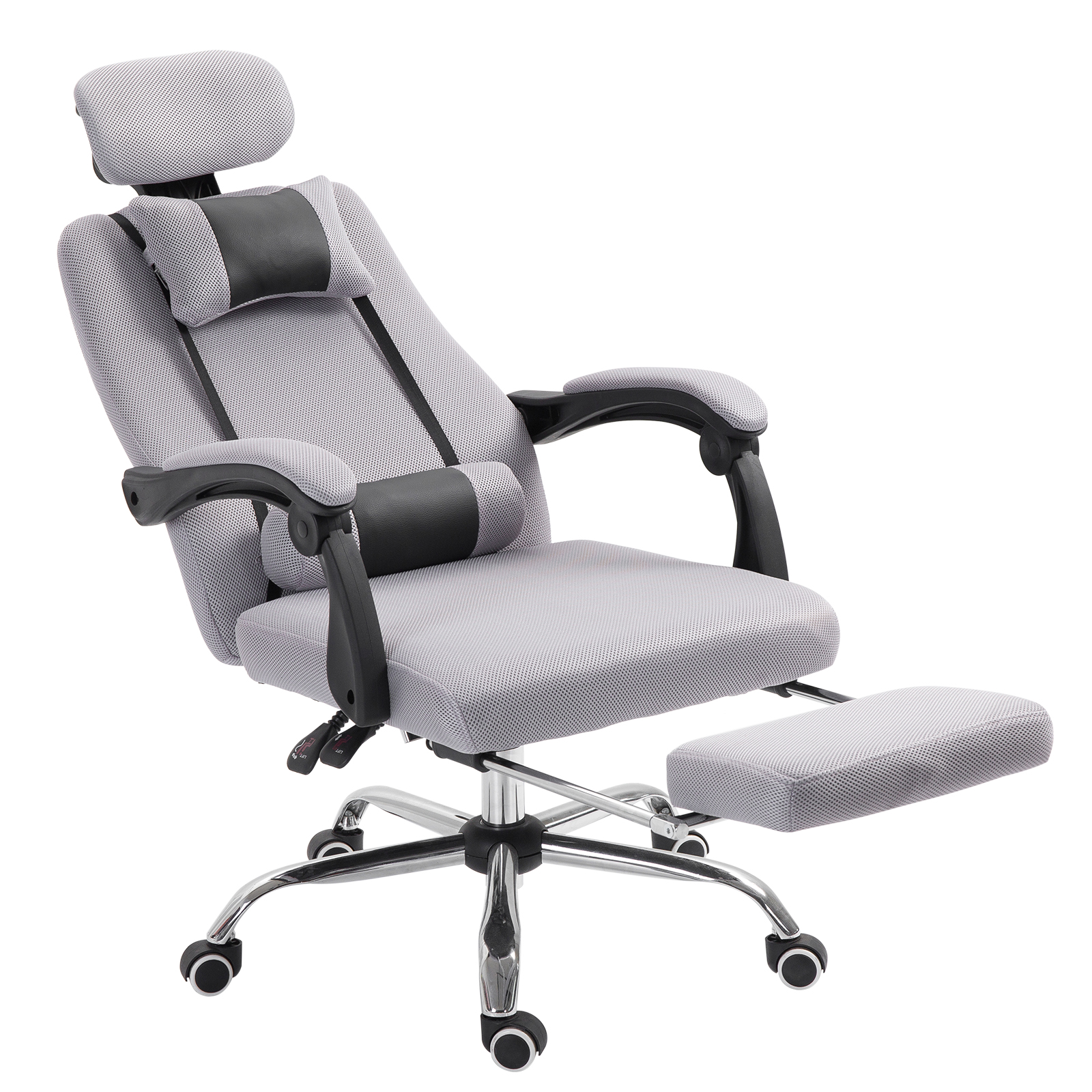 Libellé HOMCOM Fauteuil de bureau manager grand confort repose-pied tétière + coussin lombaires intégrés dossier inclinable revêtement tissu micro perforé gr