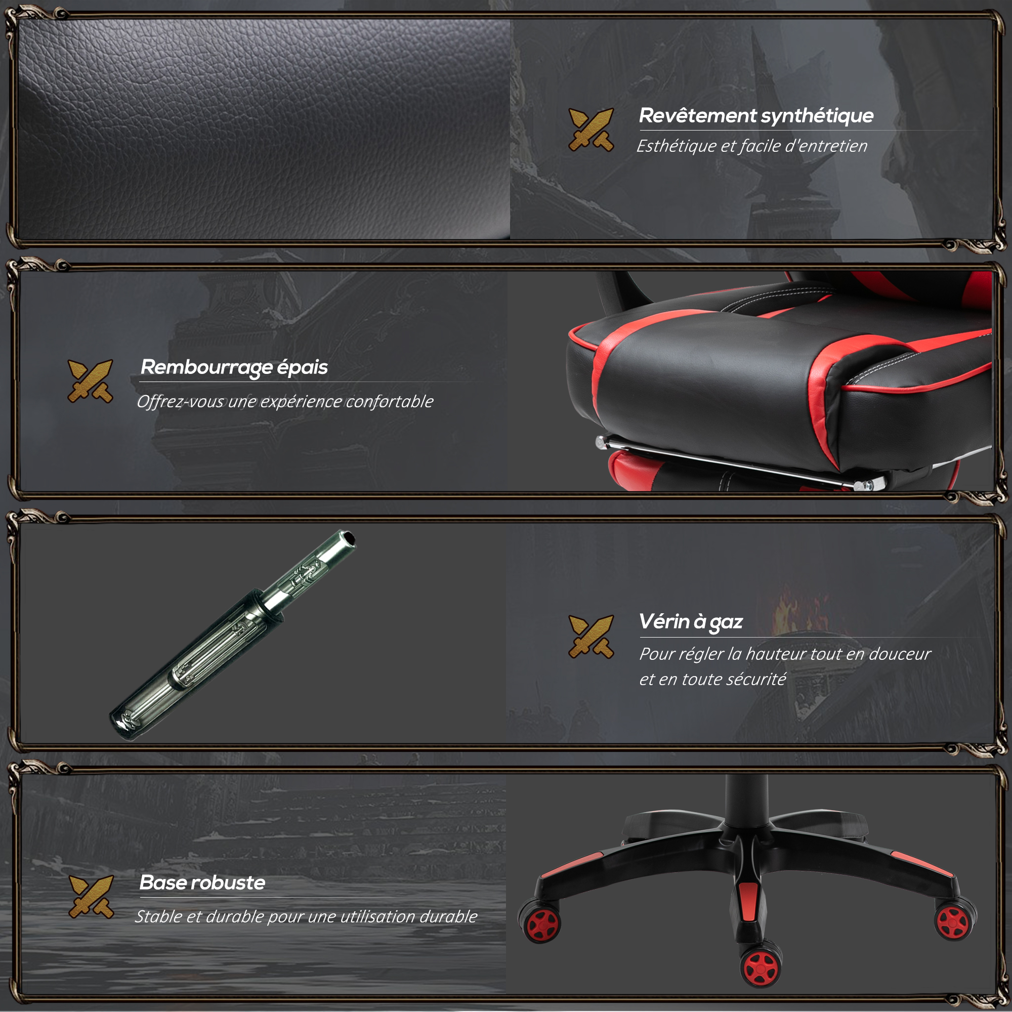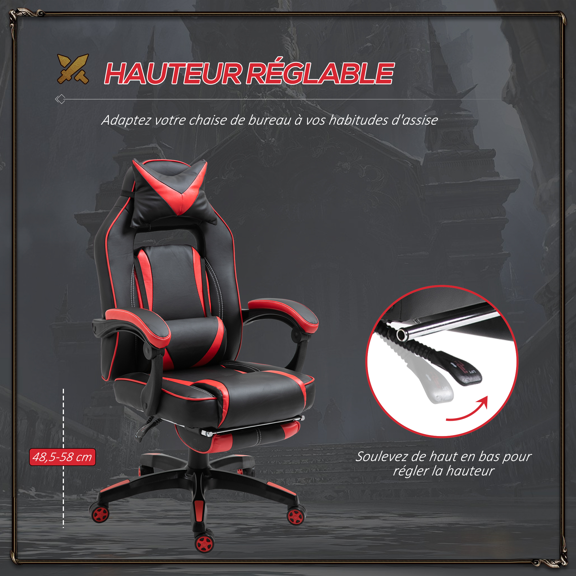 | Libellé | HOMCOM Fauteuil de bureau manager grand confort style baquet racing gamer pivotant inclinable avec coussins et repose-pieds revêtement synthétique no |