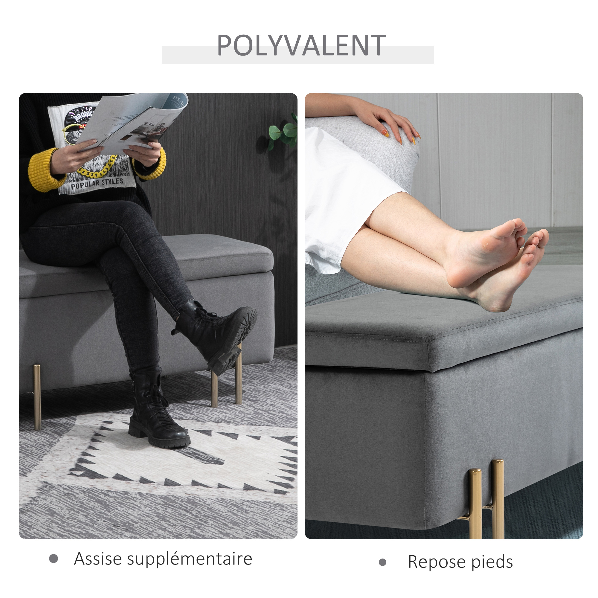 HOMCOM Grand pouf coffre de rangement design contemporain- banc avec espace de rangement - dim. 100L x 40