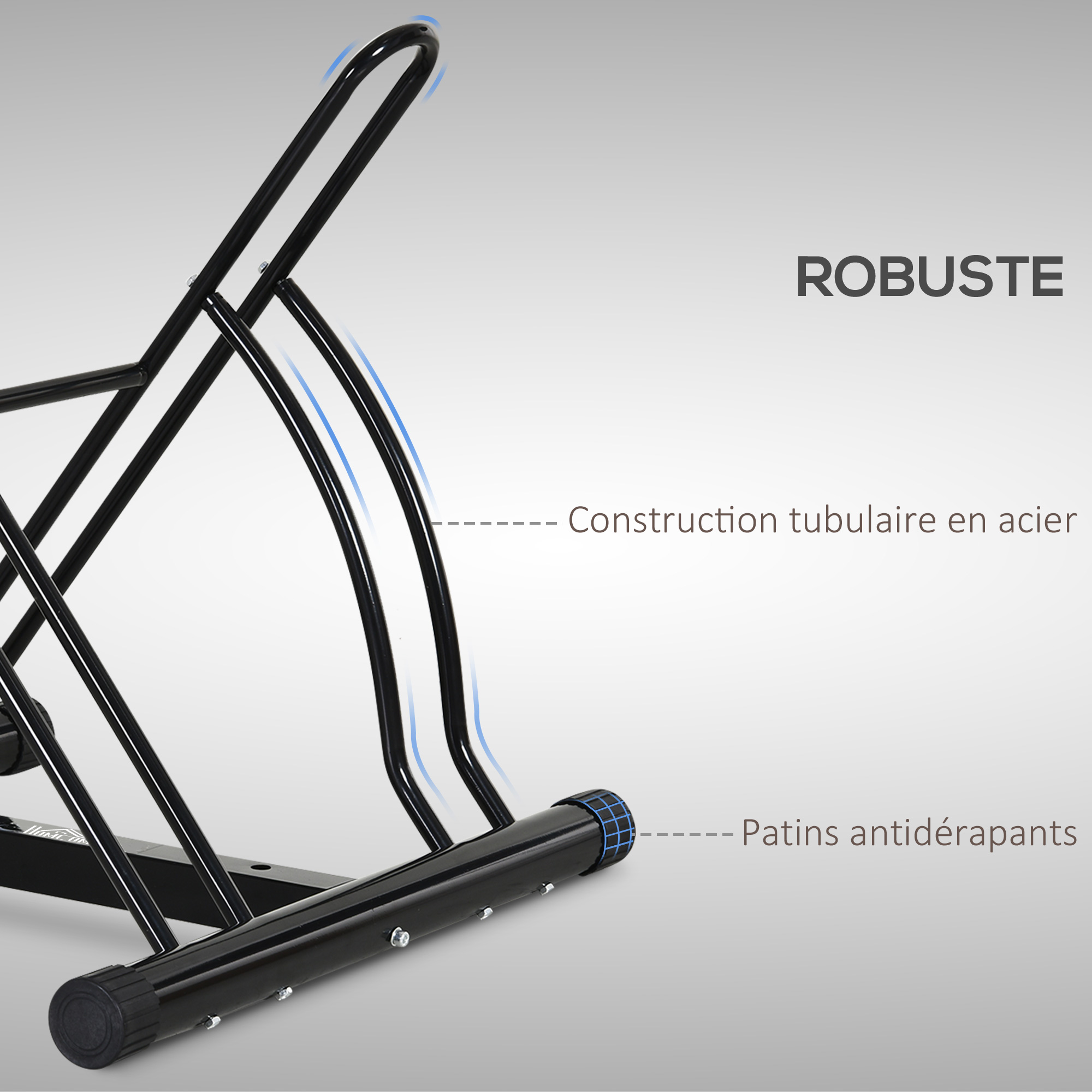 | Libellé | HOMCOM Râtelier 2 vélos modulable dim. 54L x 60l x 57H cm acier époxy noir |