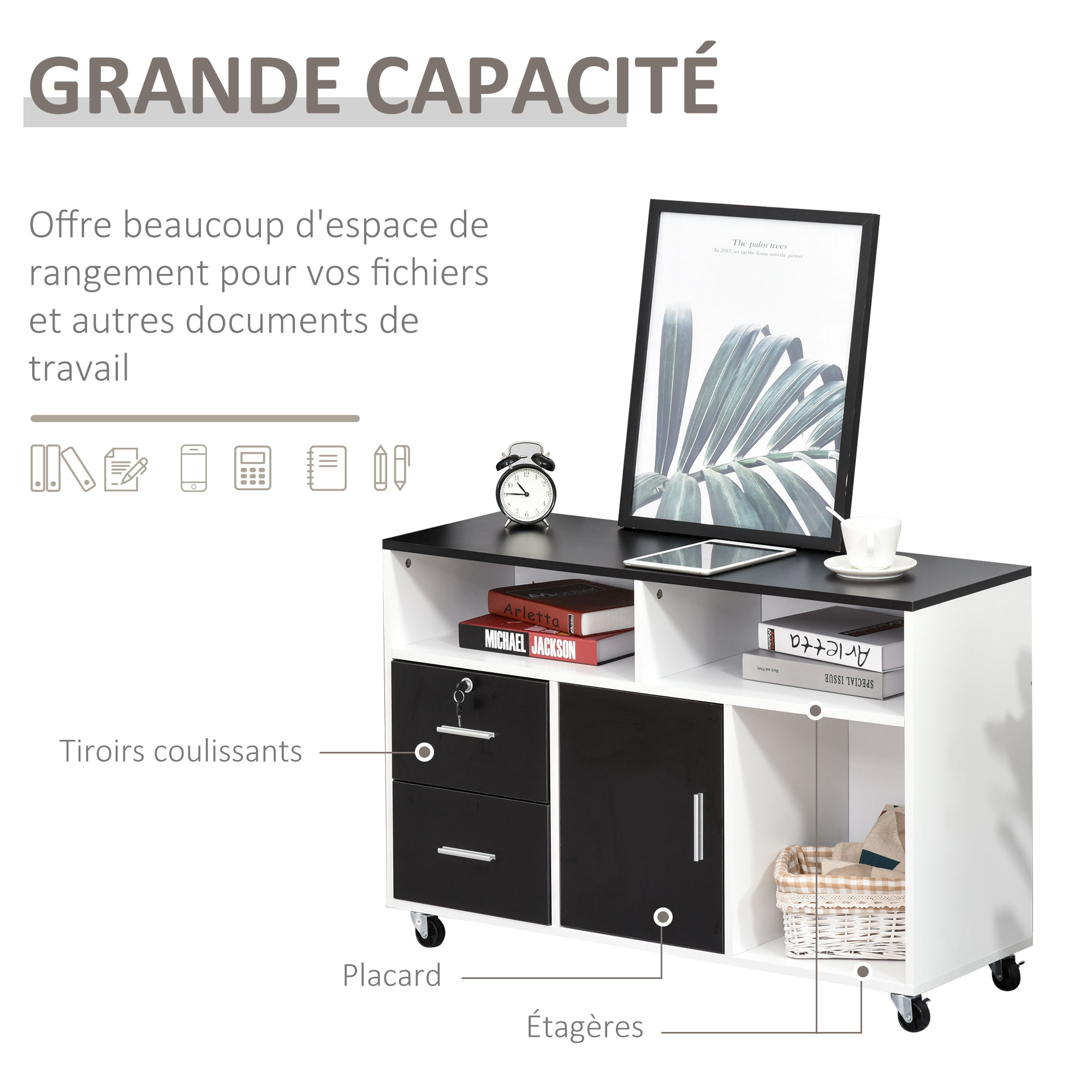 | Libellé | HOMCOM Support d'imprimante caisson placard porte avec étagère, niches, tiroirs verrouillables + grand plateau panneaux particules noir blanc |