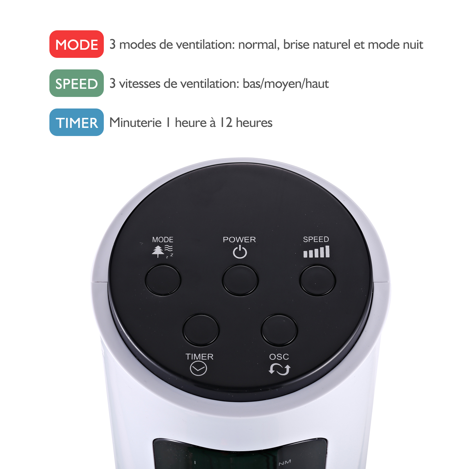 Libellé HOMCOM Ventilateur colonne tour programmable oscillant silencieux 45 W avec télécommande écran affichage minuterie