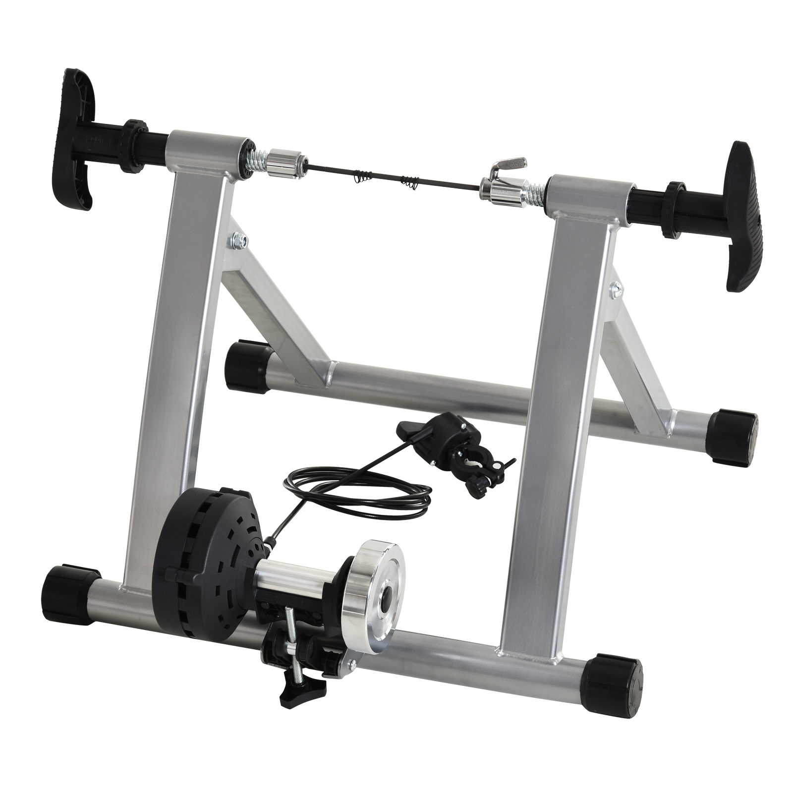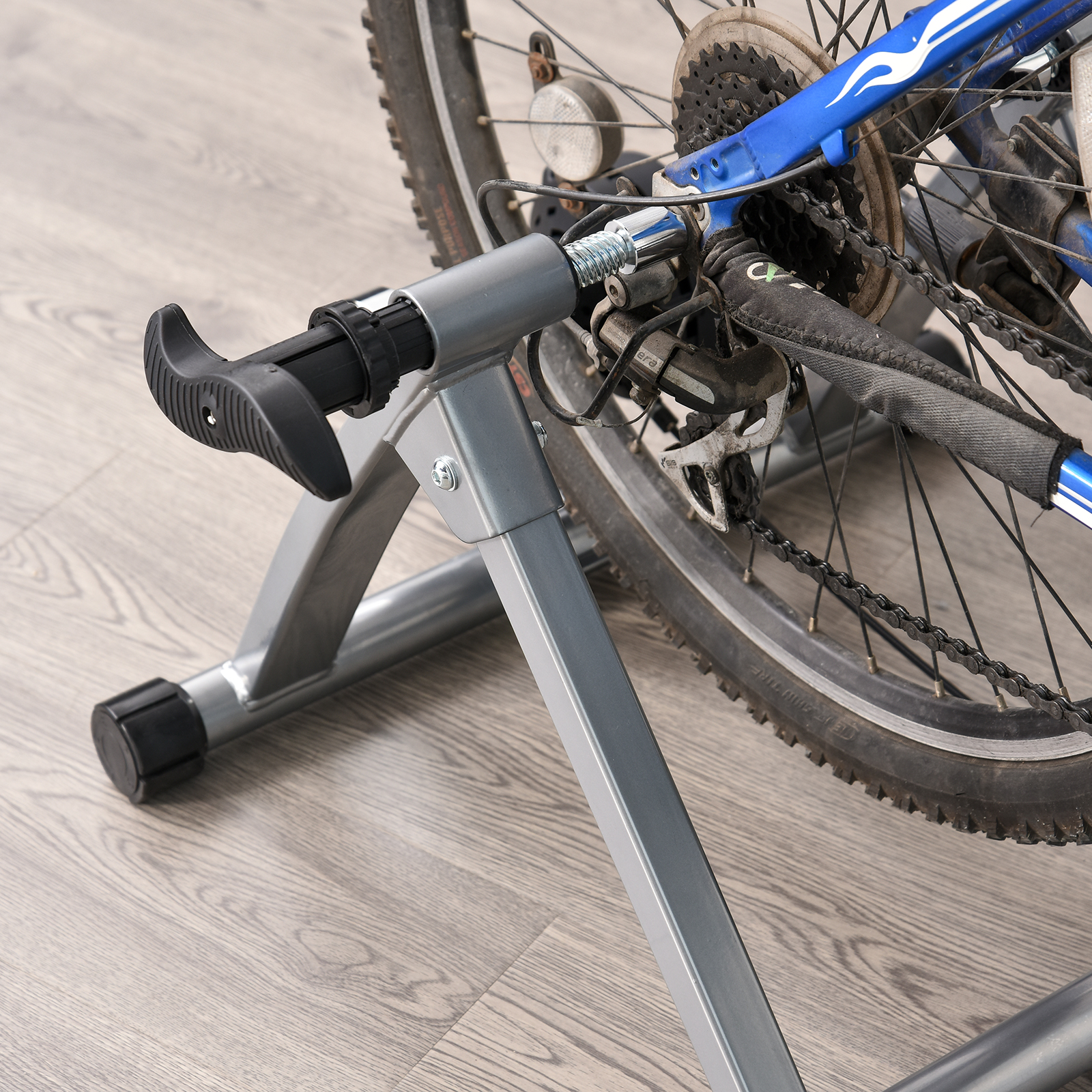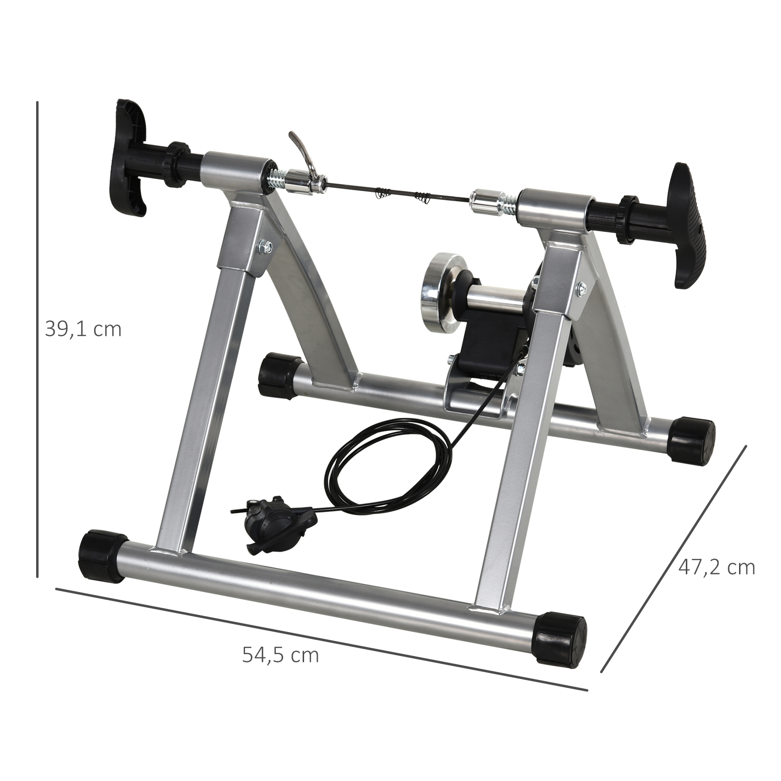 Libellé Home trainer pour vélo support entraînement vélo VTT trainer magnétique pliable 5 niveaux de résistance réglable gris métal