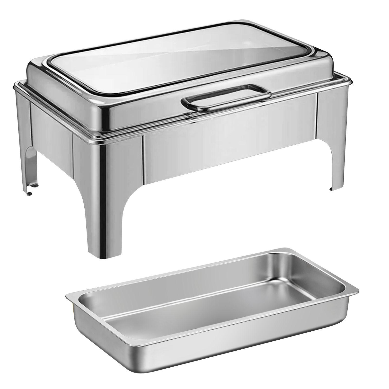 Homeline Chauffe-plats Rectangulaire 9L Simple Compartiment en Inox avec Couvercle Vitré Argent