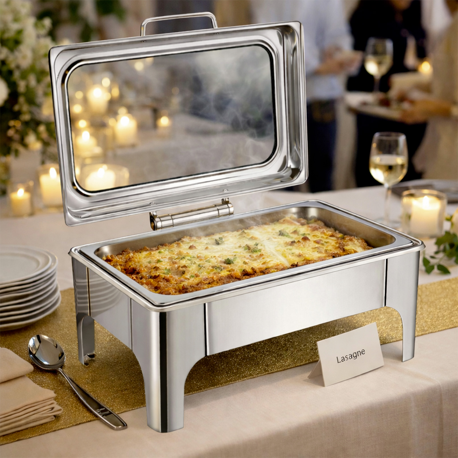 | Libellé | Homeline Chauffe-plats Rectangulaire 9L Simple Compartiment en Inox avec Couvercle Vitré Argent |