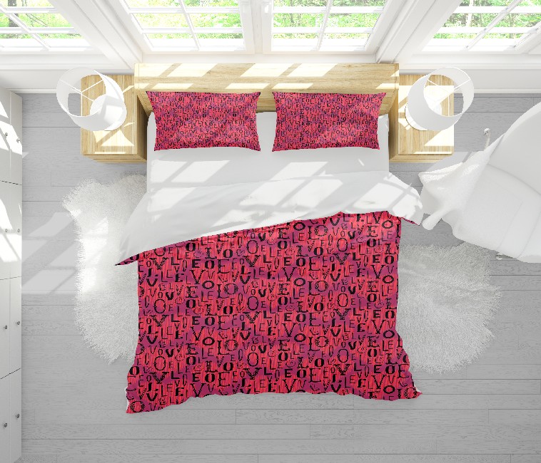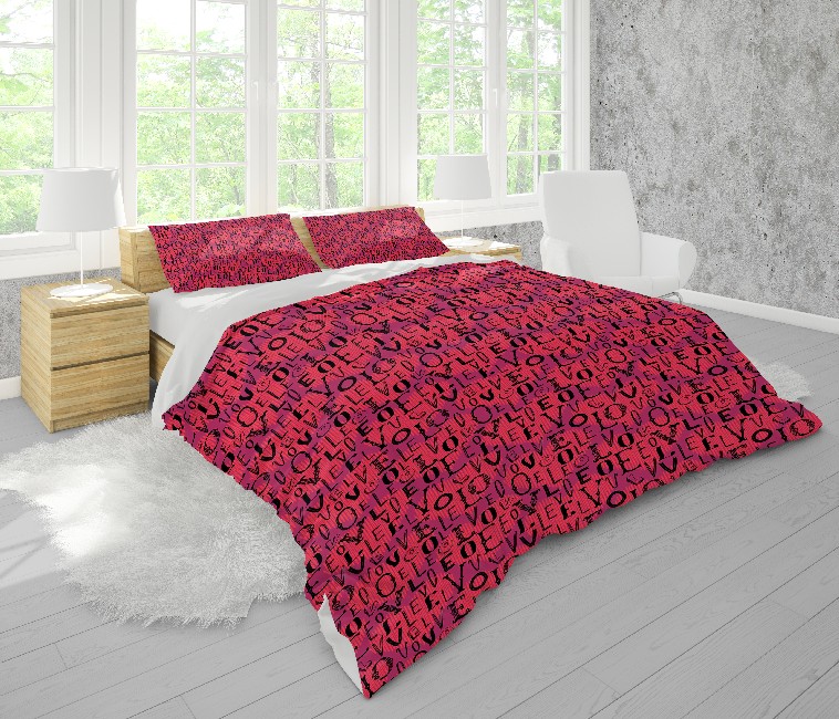 Homemania Housse de couette Amour - Amour 3 - Rose, noir - 200 X 250 cm