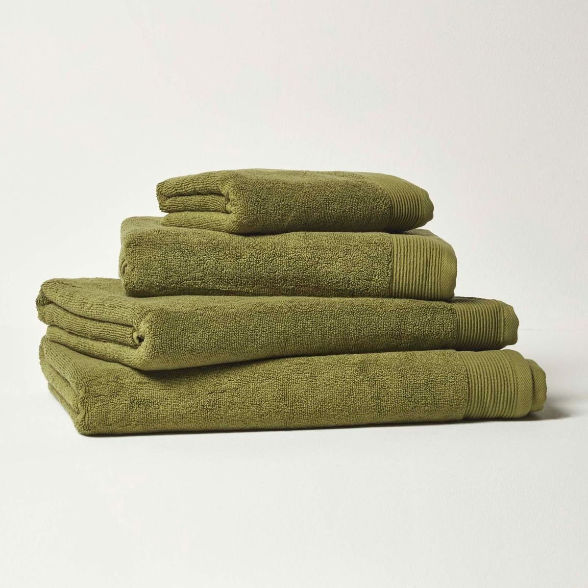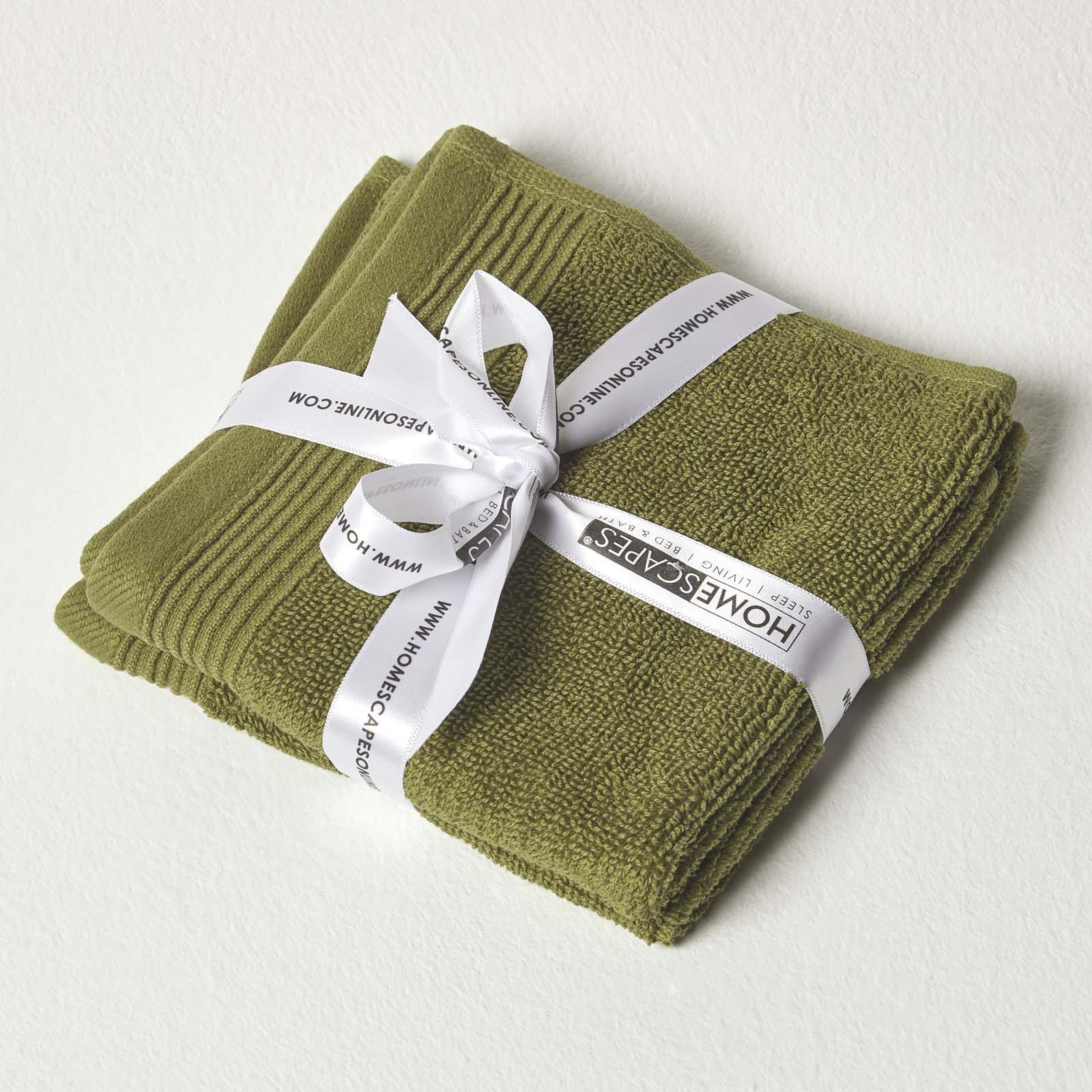 Homescapes Carré éponge 30 x 30 cm en coton égyptien Premium 700 gm², Lot de 2, Vert mousse