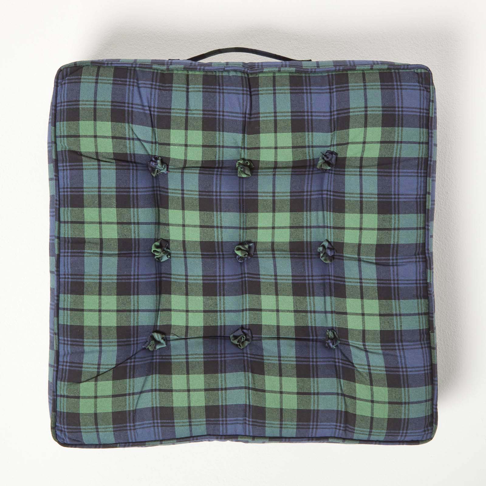 Homescapes Coussin d'assise rehausseur en coton à carreaux écossais Bleu, 50 x 50 x 10 cm