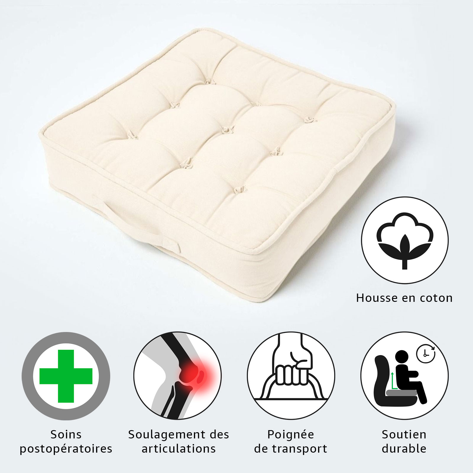 | Libellé | Homescapes Coussin d'assise rehausseur en coton Beige, 50 x 50 x 10 cm |
