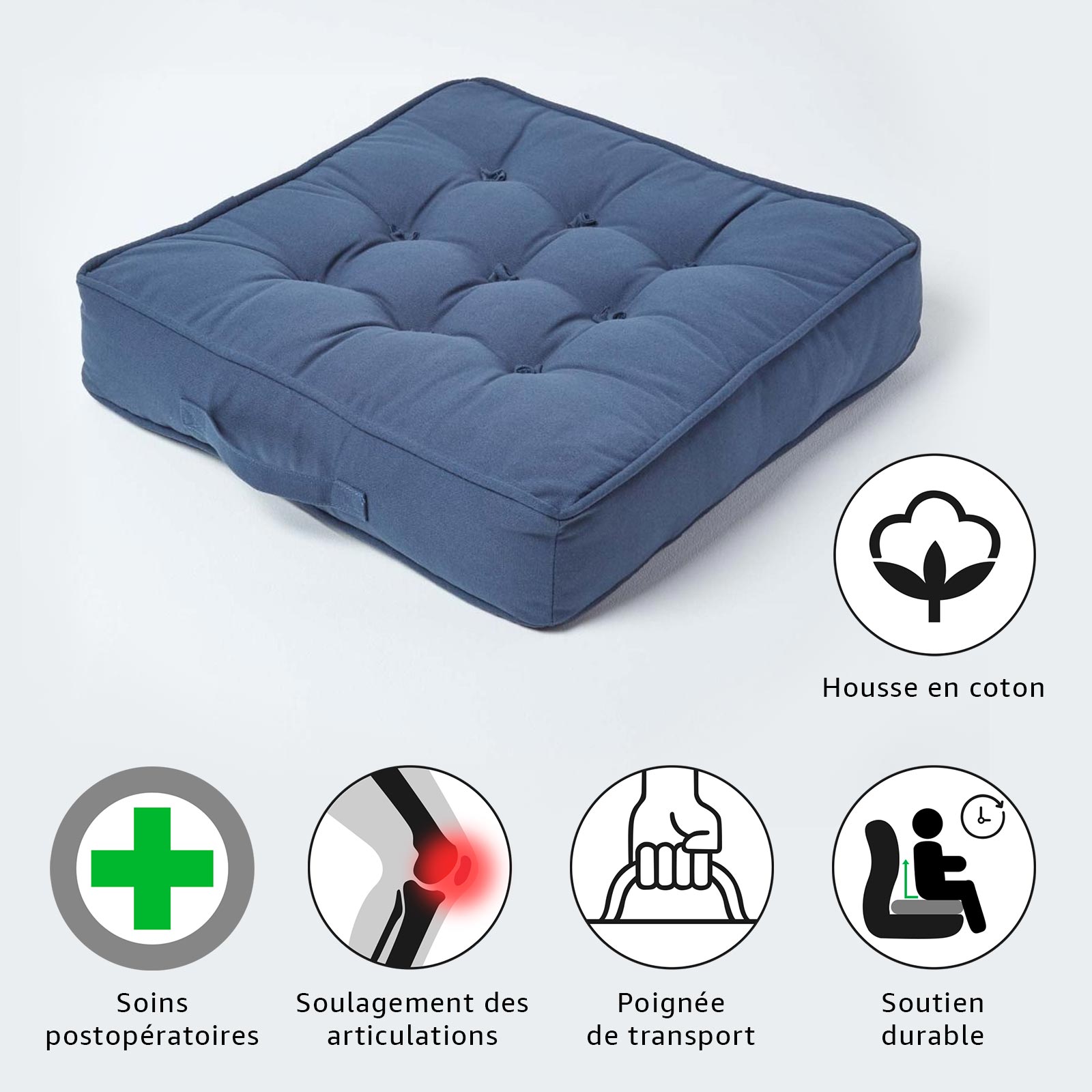 | Libellé | Homescapes Coussin d'assise rehausseur en coton Bleu marine, 50 x 50 x 10 cm |