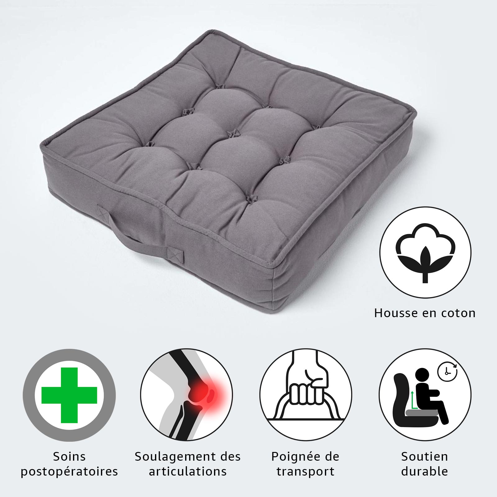 | Libellé | Homescapes Coussin d'assise rehausseur en coton Gris ardoise, 50 x 50 x 10 cm |