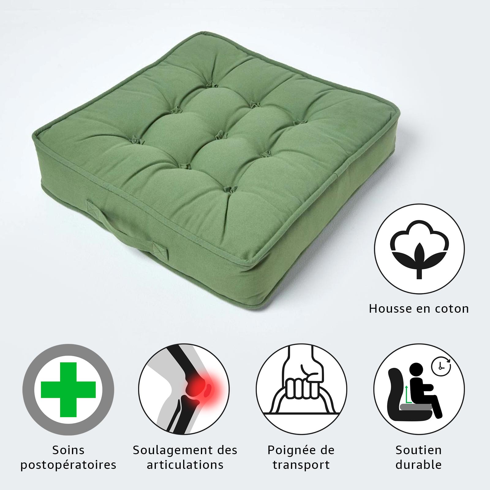 | Libellé | Homescapes Coussin d'assise rehausseur en coton Vert foncé, 50 x 50 x 10 cm |