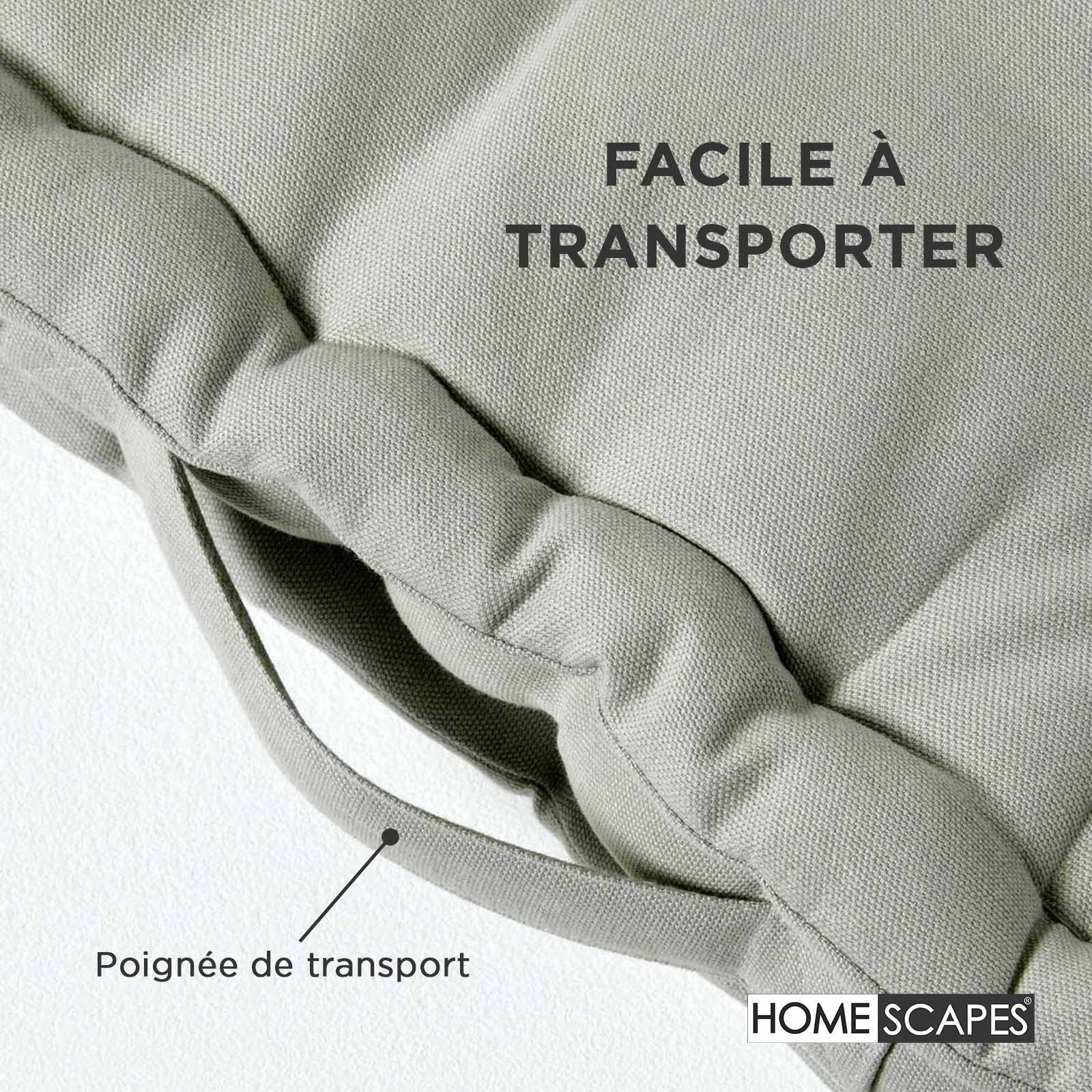 La marque Homescapes vous propose ses coussins de chaise fabriqués en 100 % Coton et rembourrés avec des fibres résistantes de première qualité. Ces coussins s’accommoderont aussi bien sur vos chaises de salon comme celles de jardin. Dans tous les cas, ceux-ci donneront une pointe de décoration et de caractère à votre foyer non négligeable. Vous trouverez dans cette gamme des assises de chaises avec des couleurs diverses et variées et dans des motifs aussi bien amusants que rafraichissants avec une grande sélection de couleurs unies, rayures épaisses et minces, de belles impressions florales et rétro et également des carreaux tartan classiques tissés. L’utilisation de nos produits est multiple, en effet, cela peut aller de coussins de chaise, galettes de siège, rehausseurs pour chaises de salon ou de jardin. Nous sommes également heureux de vous rappeler que Homescapes vous offre un large choix de produits pour votre intèrieur tels que des jétés de lit, canapé, housses de coussins, rideaux, tabliers et tout cela dans des motifs et matières qui se coordonnent parfaitement entre eux.