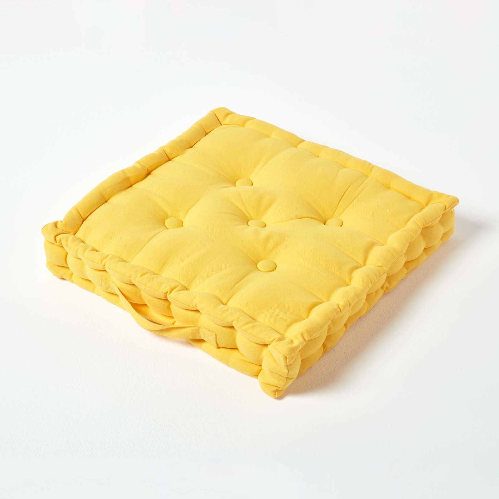 Homescapes Coussin de sol - Jaune Uni - 50 x 50 cm