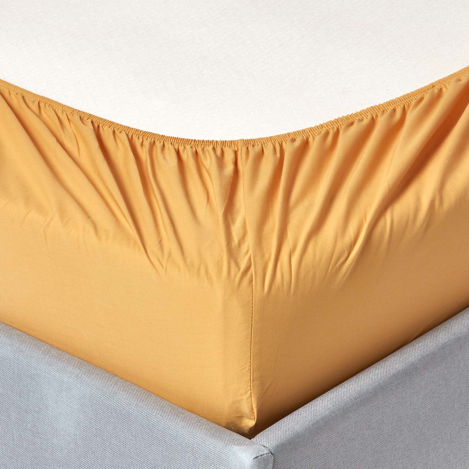 Homescapes Drap-housse Jaune Moutarde 100% coton Égyptien 200 fils 150 x 200 cm