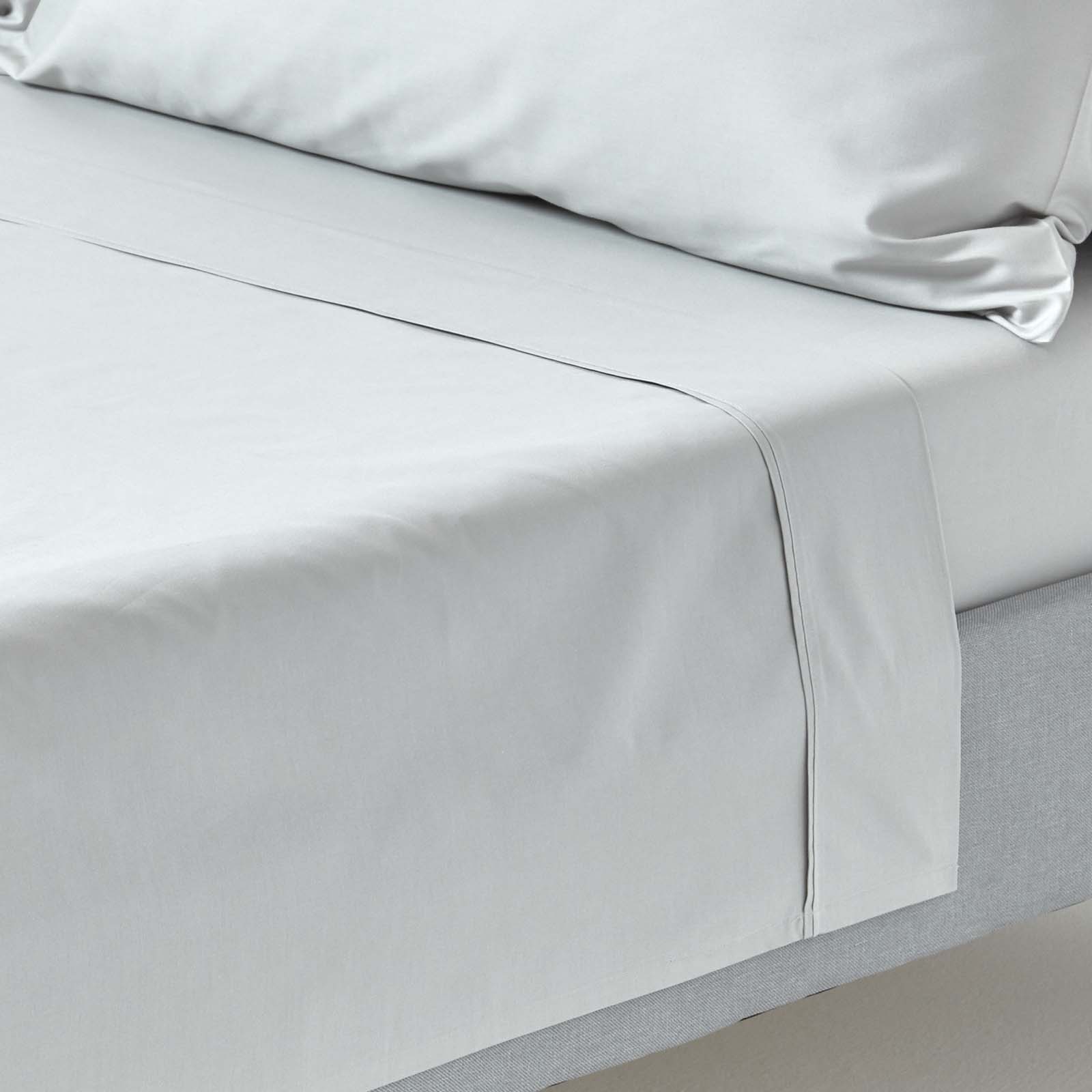 Homescapes Drap plat uni 100 % coton égyptien 200 fils Gris argent 270 x 300 cm