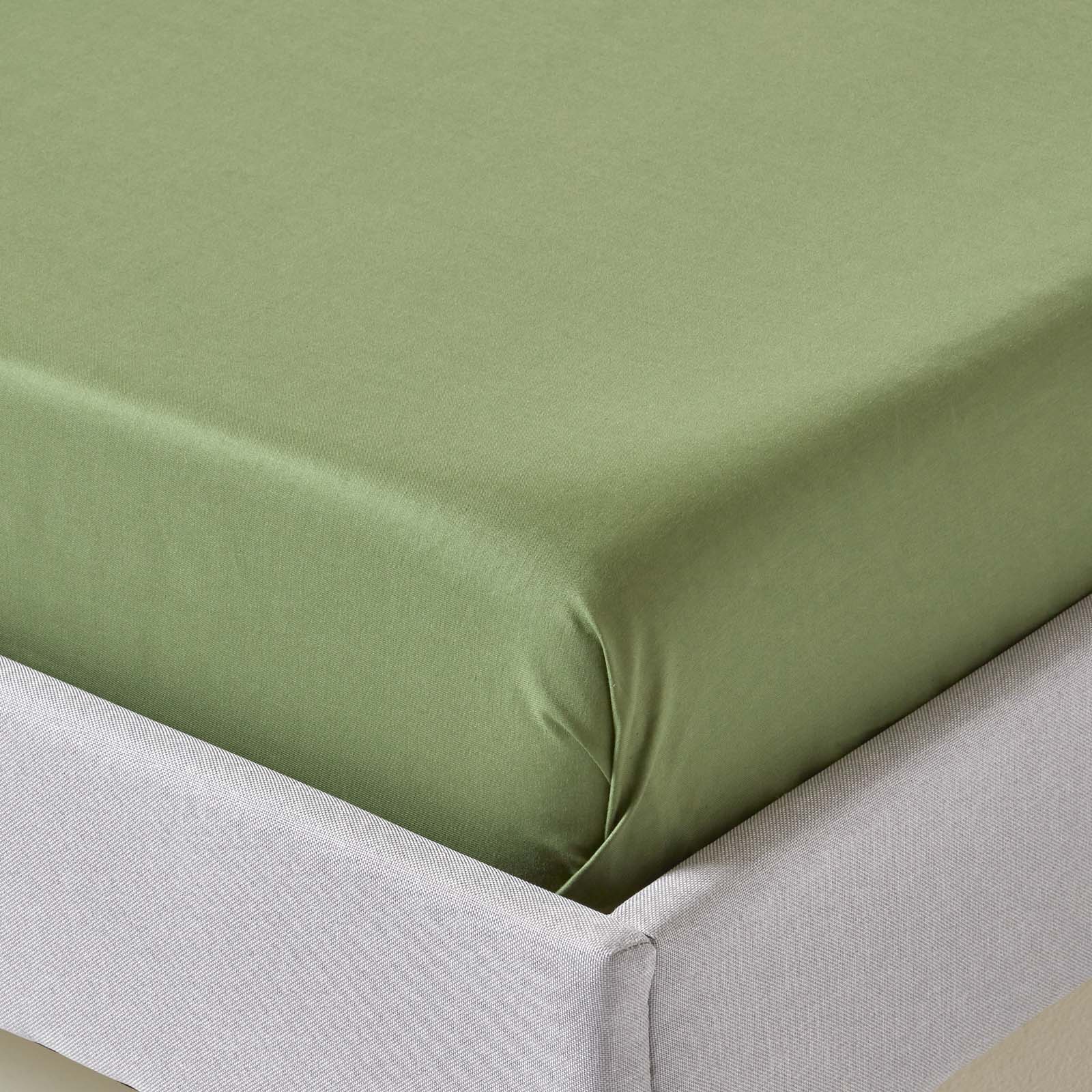 Homescapes Drap plat uni 100% coton égyptien Bio 400 fils coloris Vert mousse 270 x 300 cm