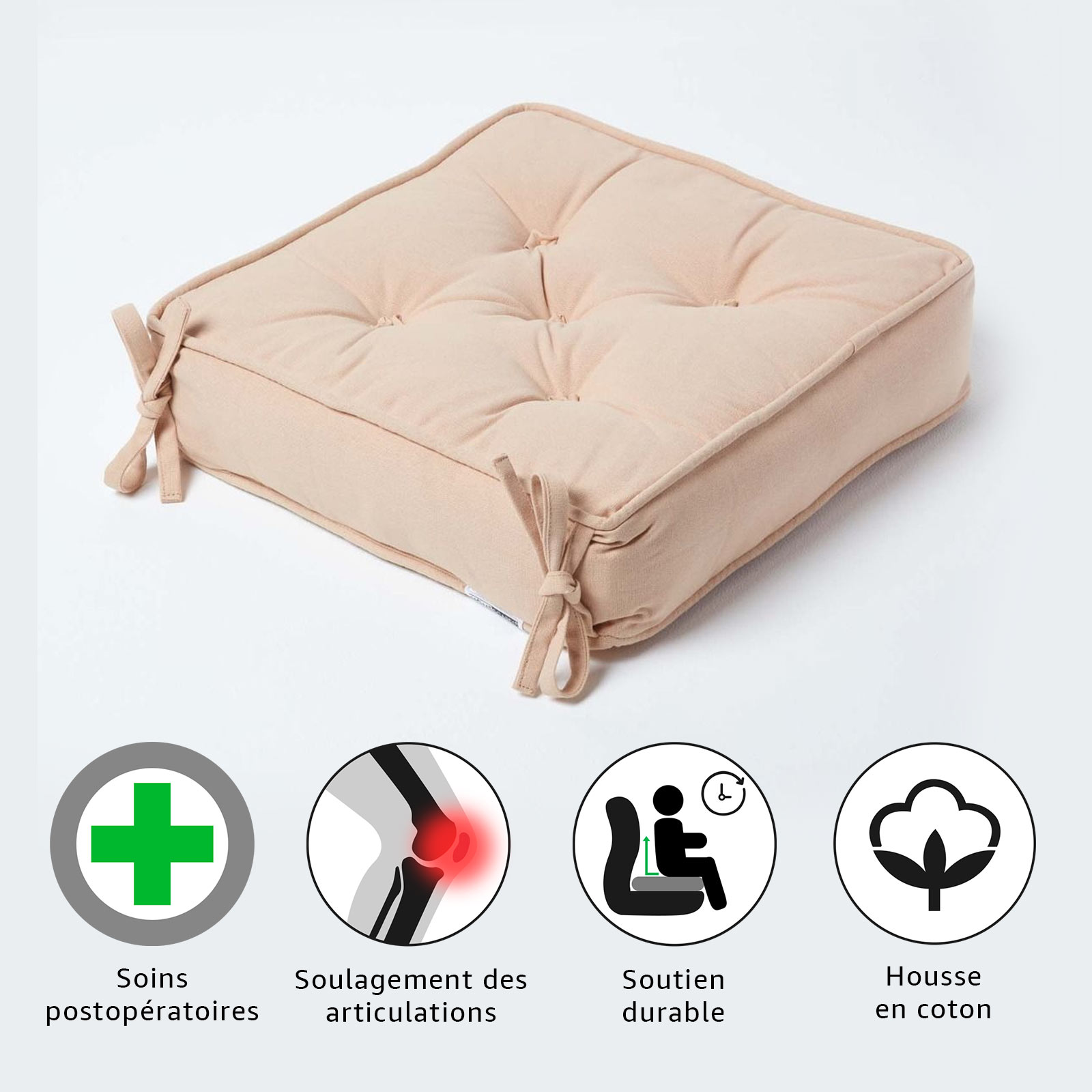 | Libellé | Homescapes Galette de chaise coussin rehausseur en coton Beige, 40 x 40 x 10 cm |
