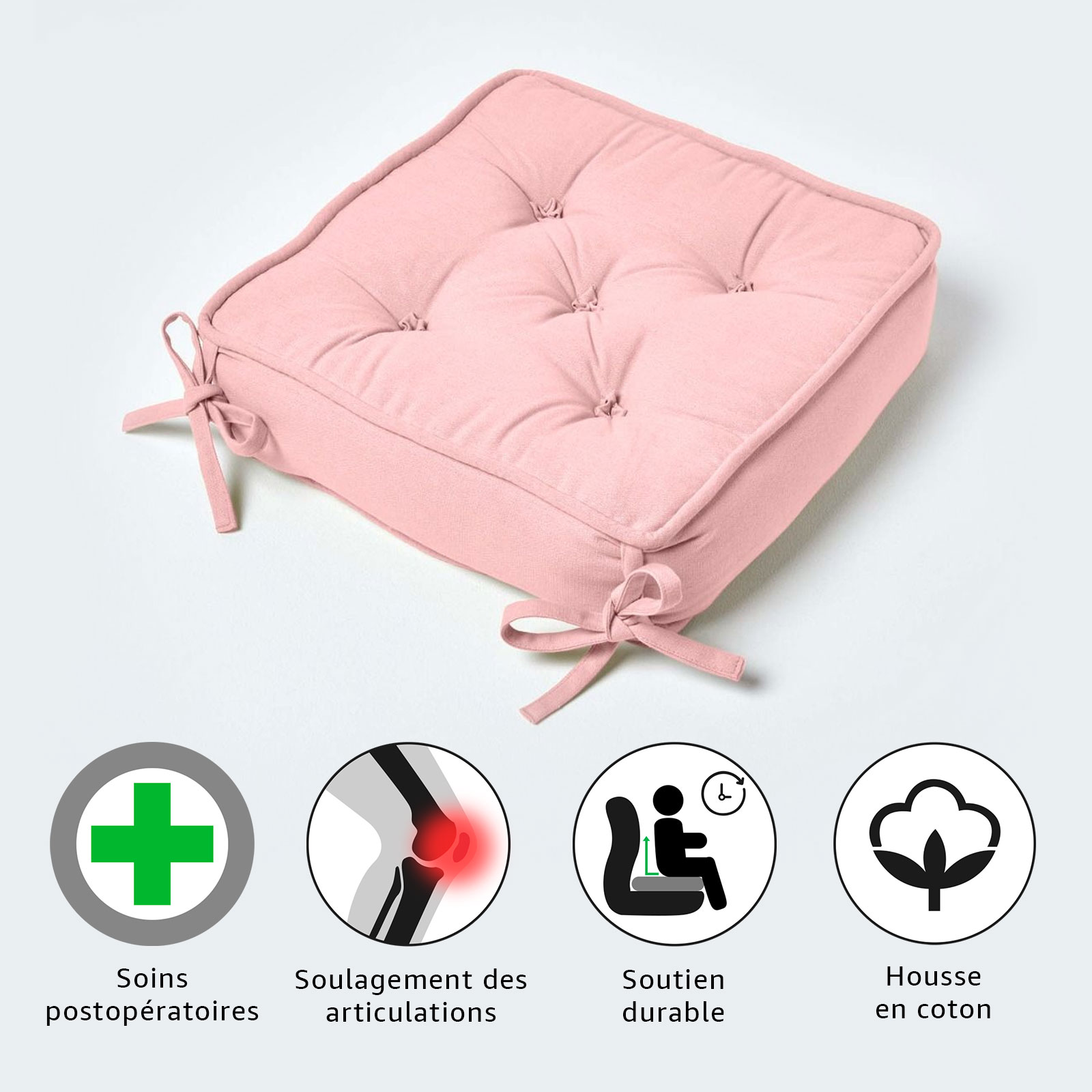 | Libellé | Homescapes Galette de chaise coussin rehausseur en coton Rose, 40 x 40 x 10 cm |
