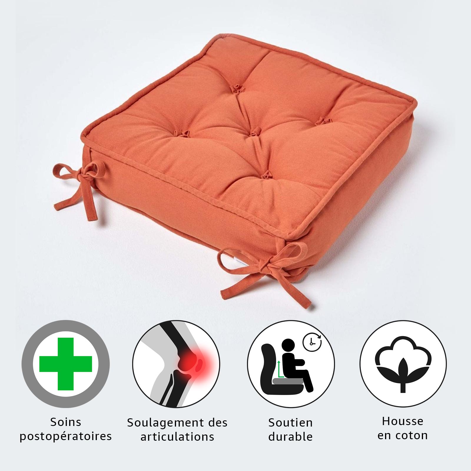 | Libellé | Homescapes Galette de chaise coussin rehausseur en coton Terracotta, 40 x 40 x 10 cm |