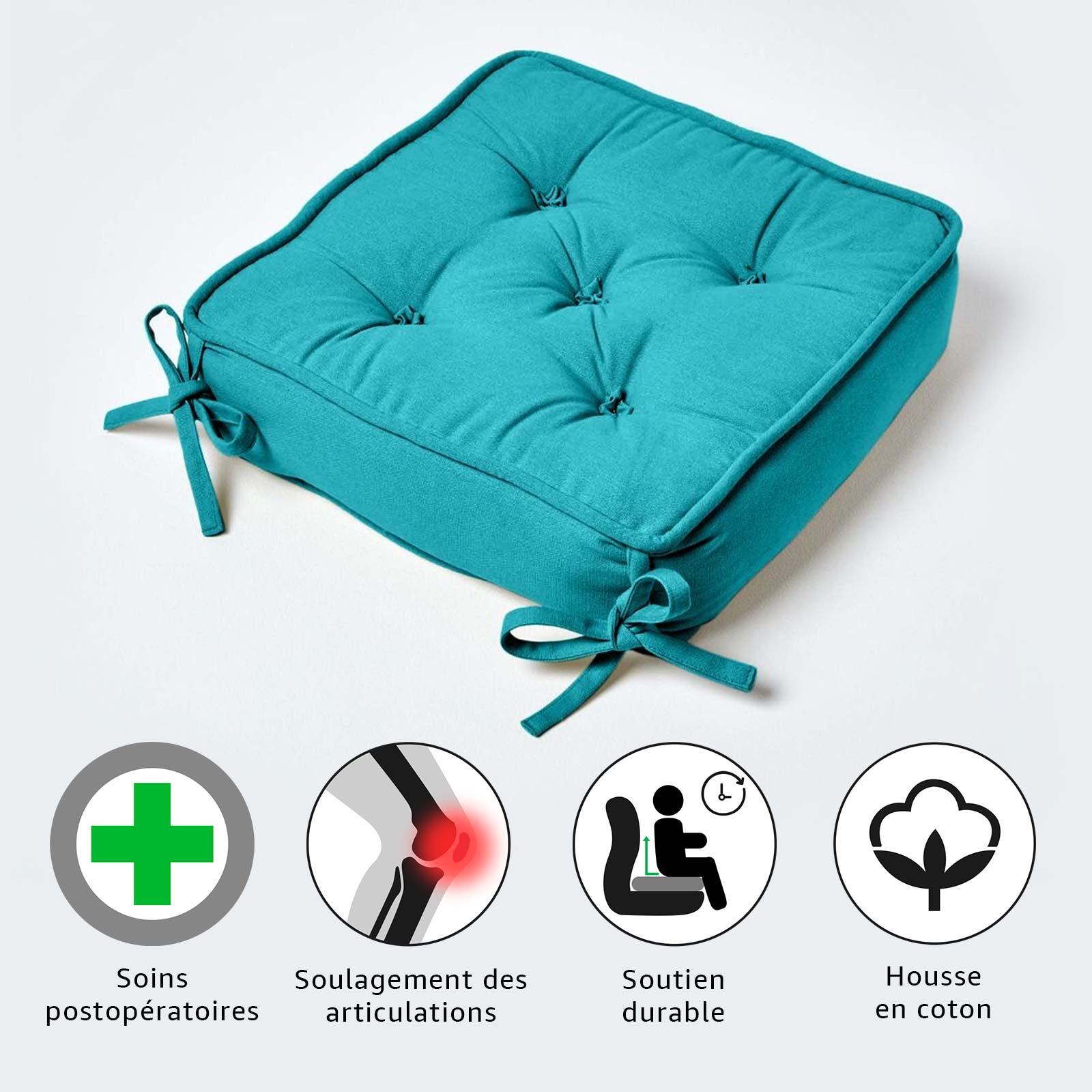 | Libellé | Homescapes Galette de chaise coussin rehausseur en coton Turquoise, 40 x 40 x 10 cm |