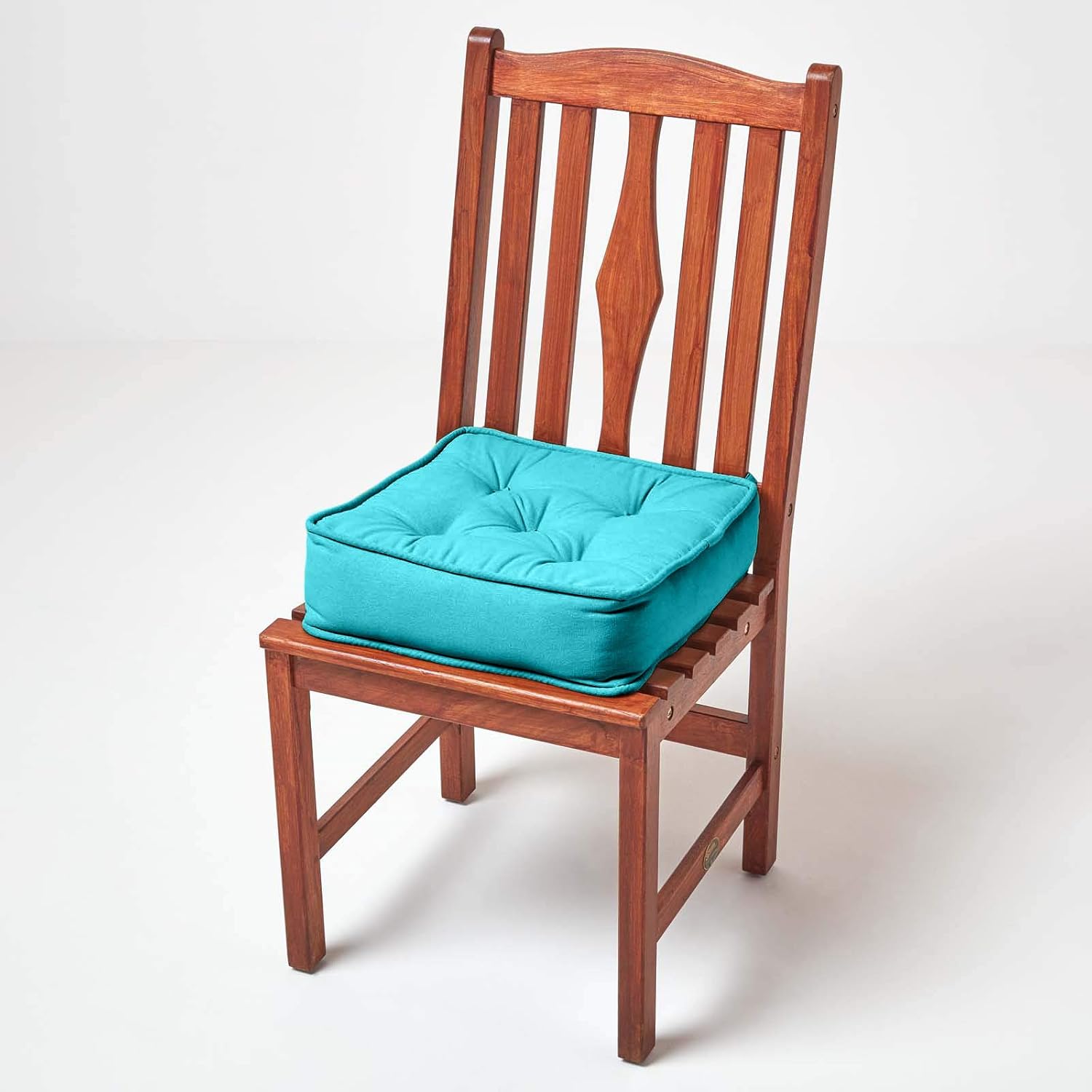 Homescapes Galette de chaise coussin rehausseur en coton Turquoise, 40 x 40 x 10 cm