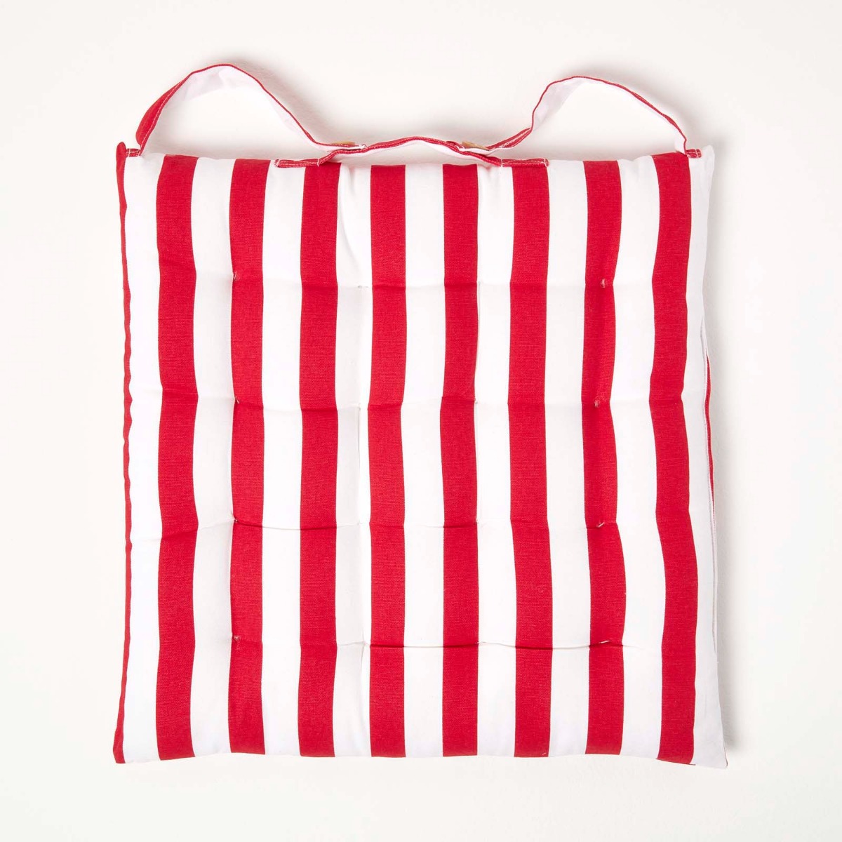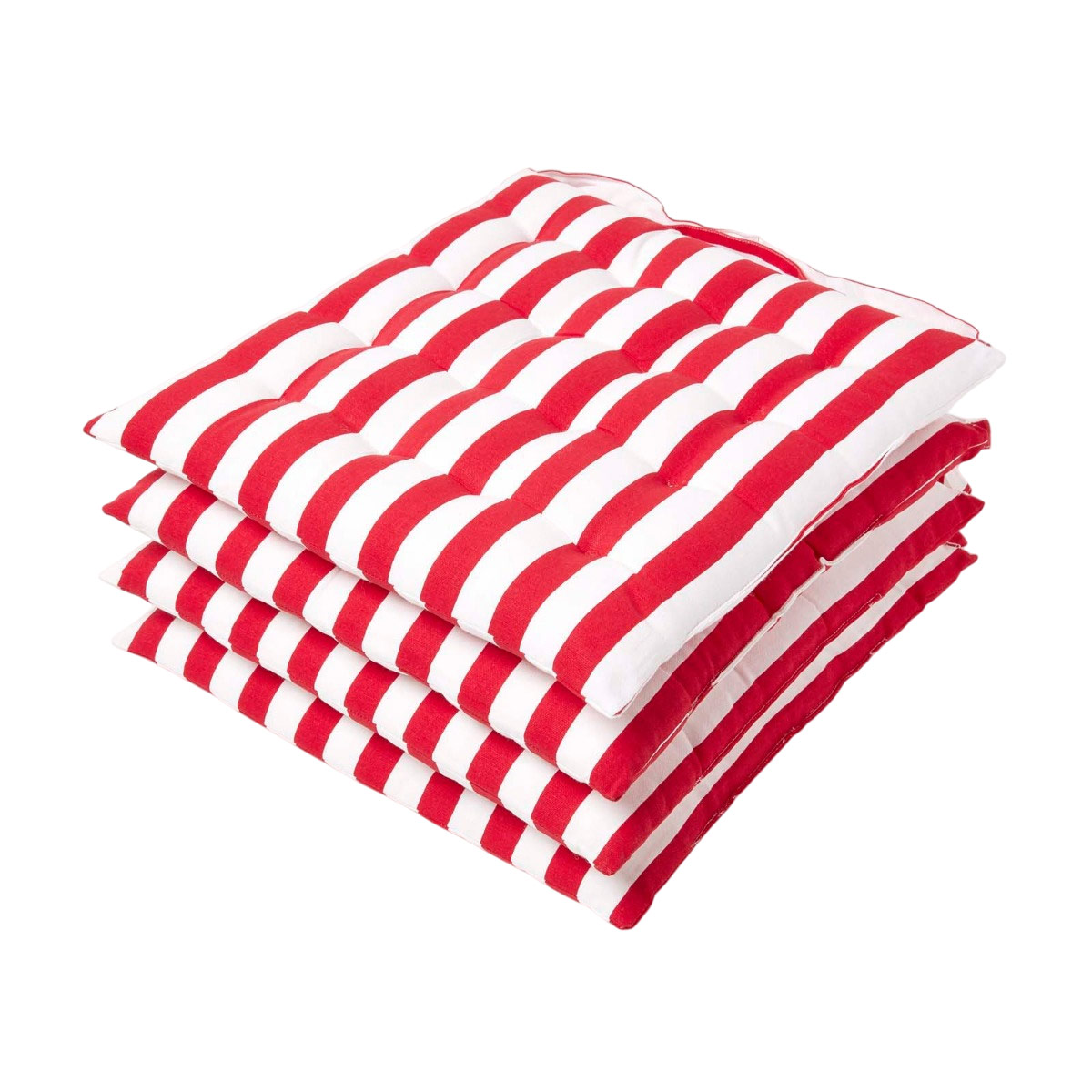 | Libellé | Homescapes Galette de chaise Rayures rouges 40x40 cm, Coussin de chaise en coton - Lot de 4 |