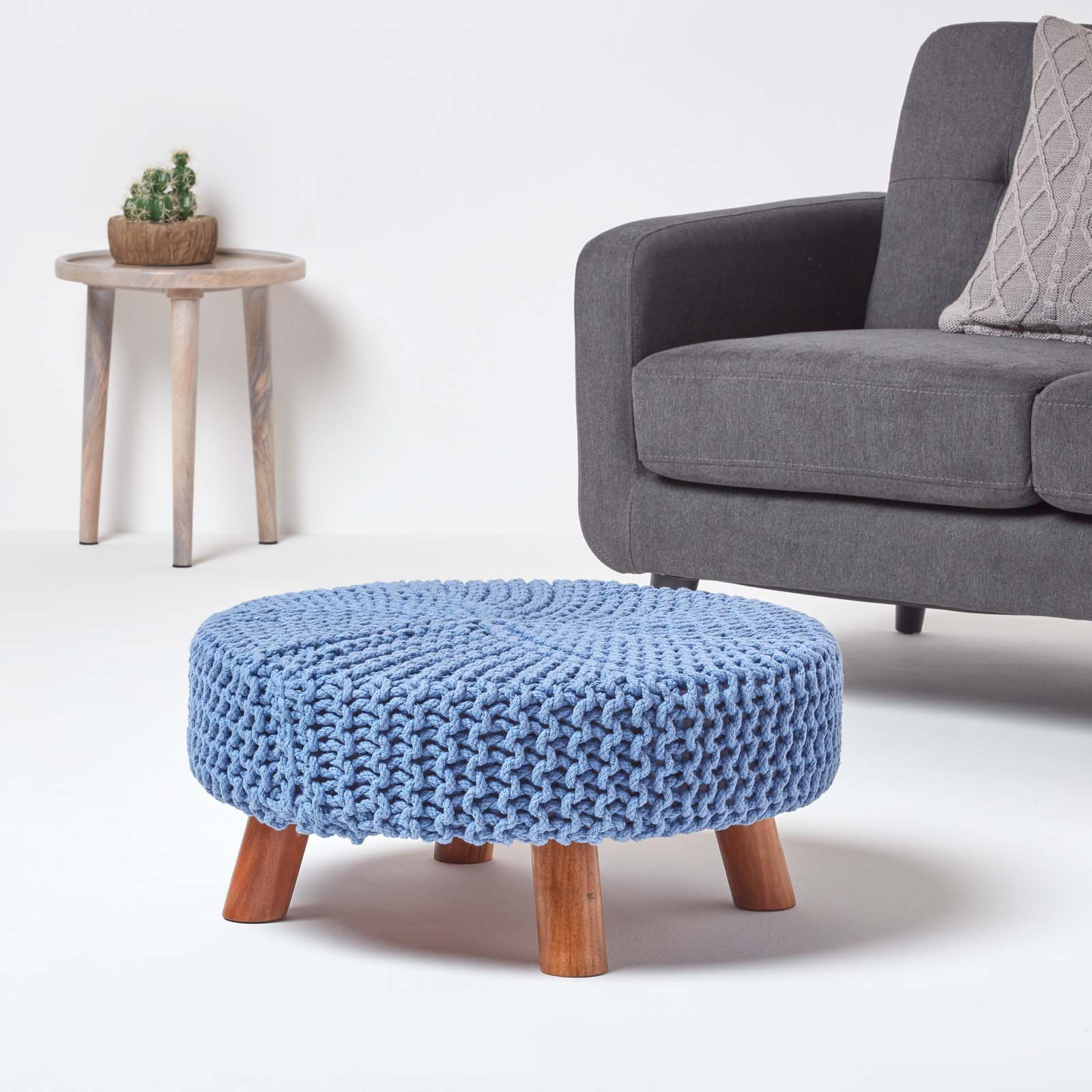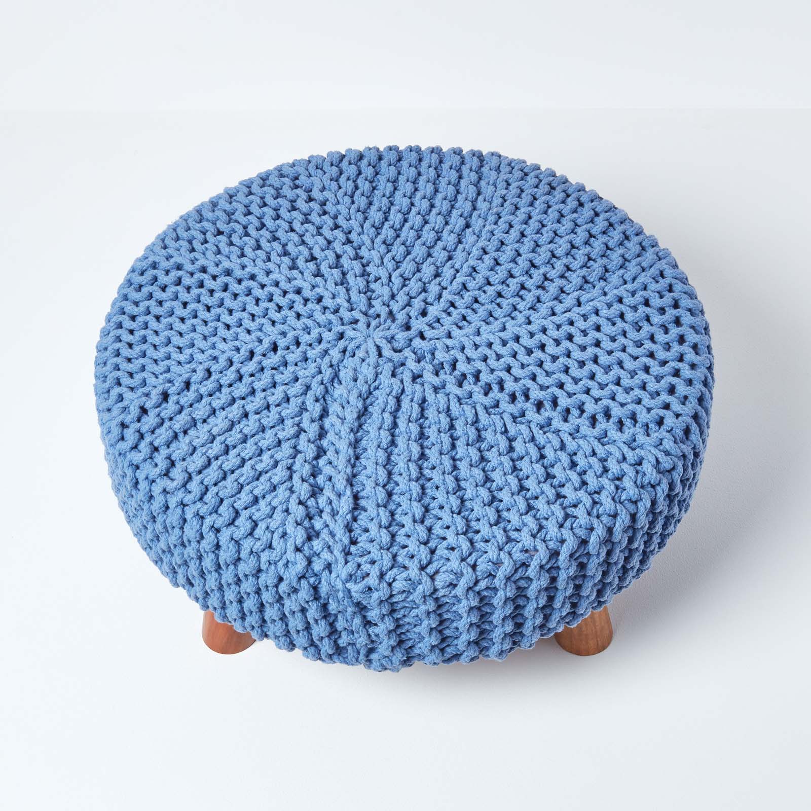 | Libellé | Homescapes Grand pouf rond en coton tricot bleu avec pieds |