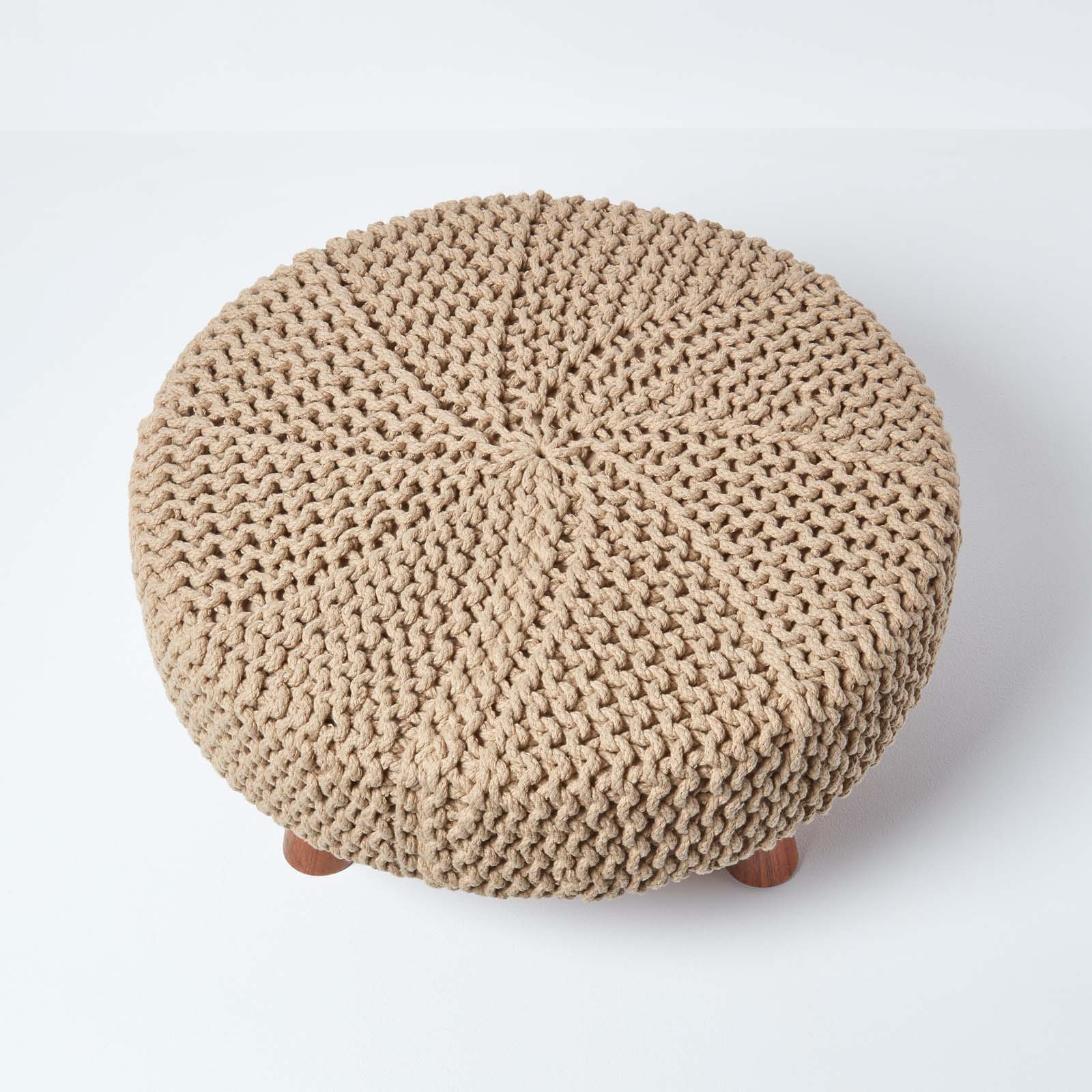 | Libellé | Homescapes Grand Pouf tressé en tricot et pieds en bois - Beige |