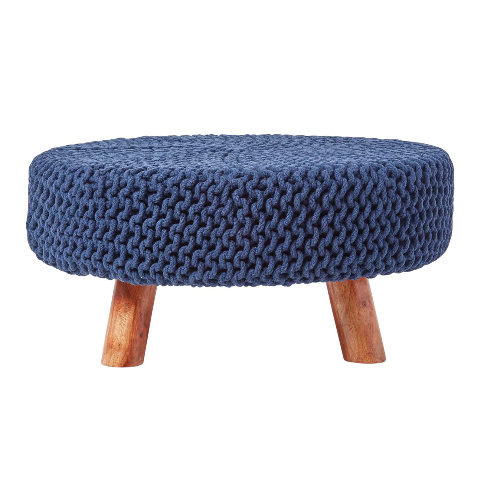 | Libellé | Homescapes Grand Pouf tressé en tricot et pieds en bois - Bleu Marine |