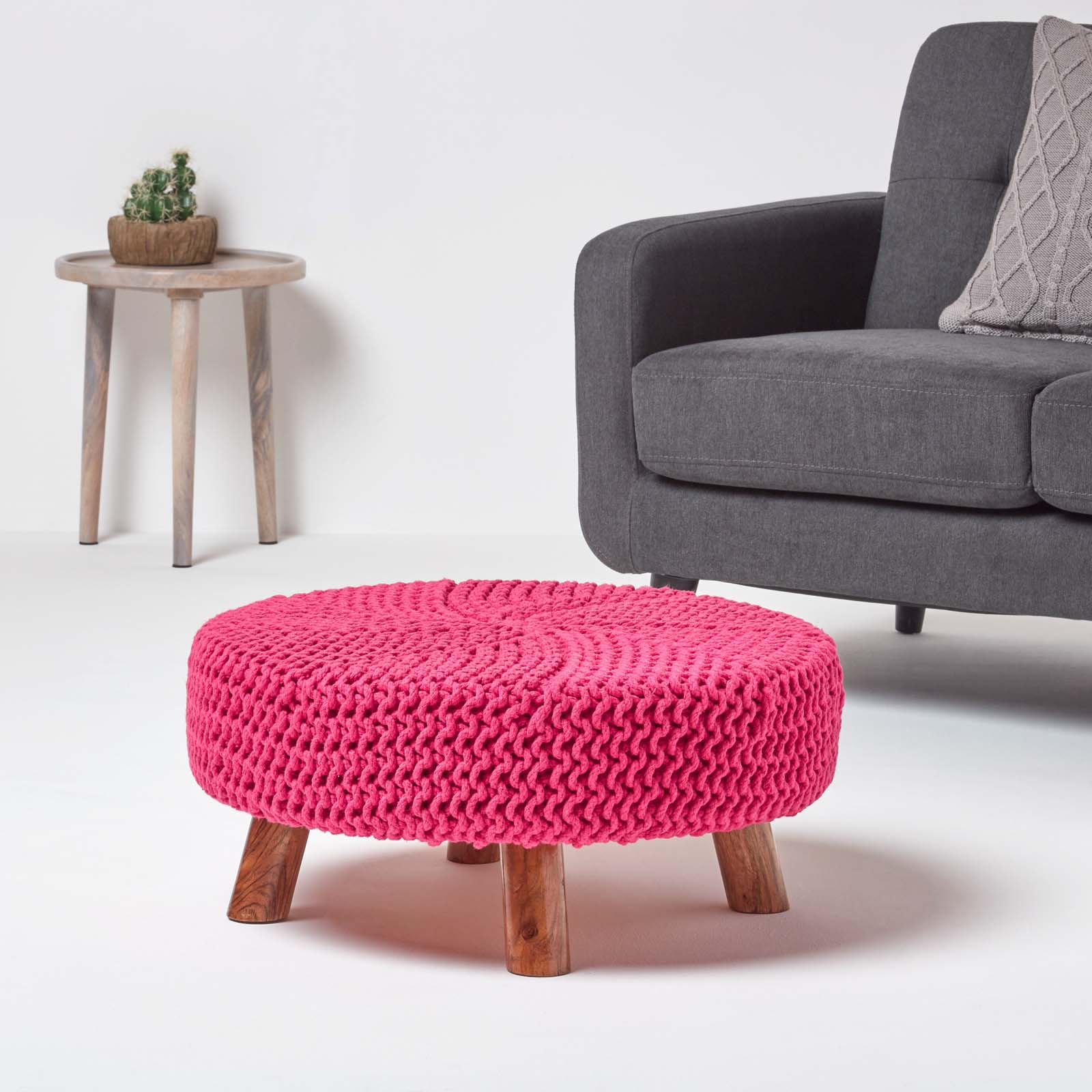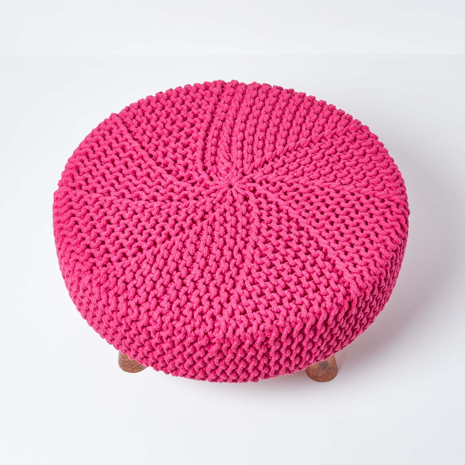 | Libellé | Homescapes Grand Pouf tressé en tricot et pieds en bois - Rose fuchsia |
