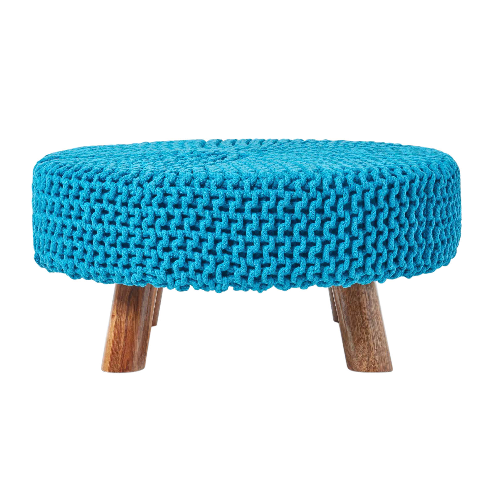 Homescapes Grand Pouf tressé en tricot et pieds en bois - Sarcelle