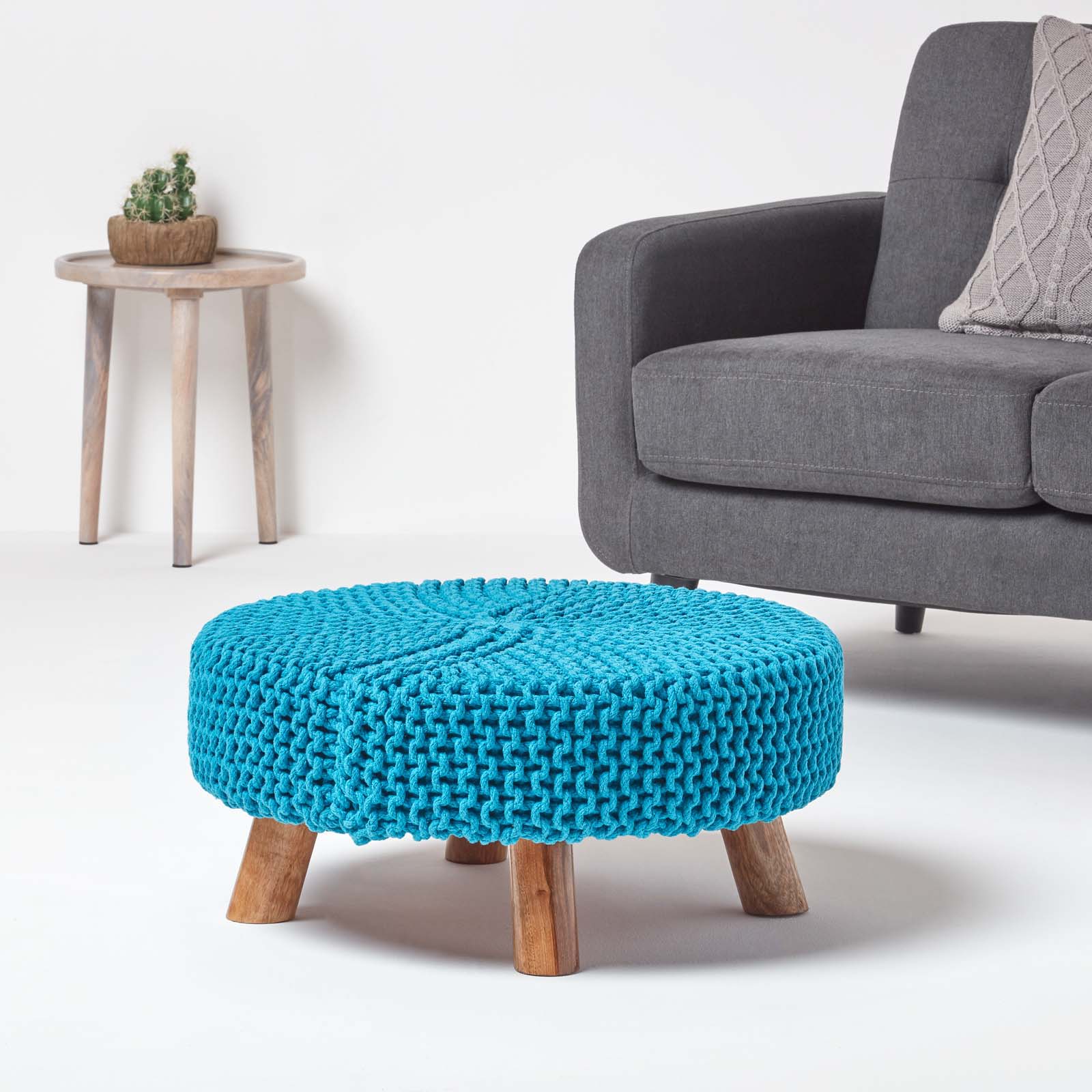 | Libellé | Homescapes Grand Pouf tressé en tricot et pieds en bois - Sarcelle |