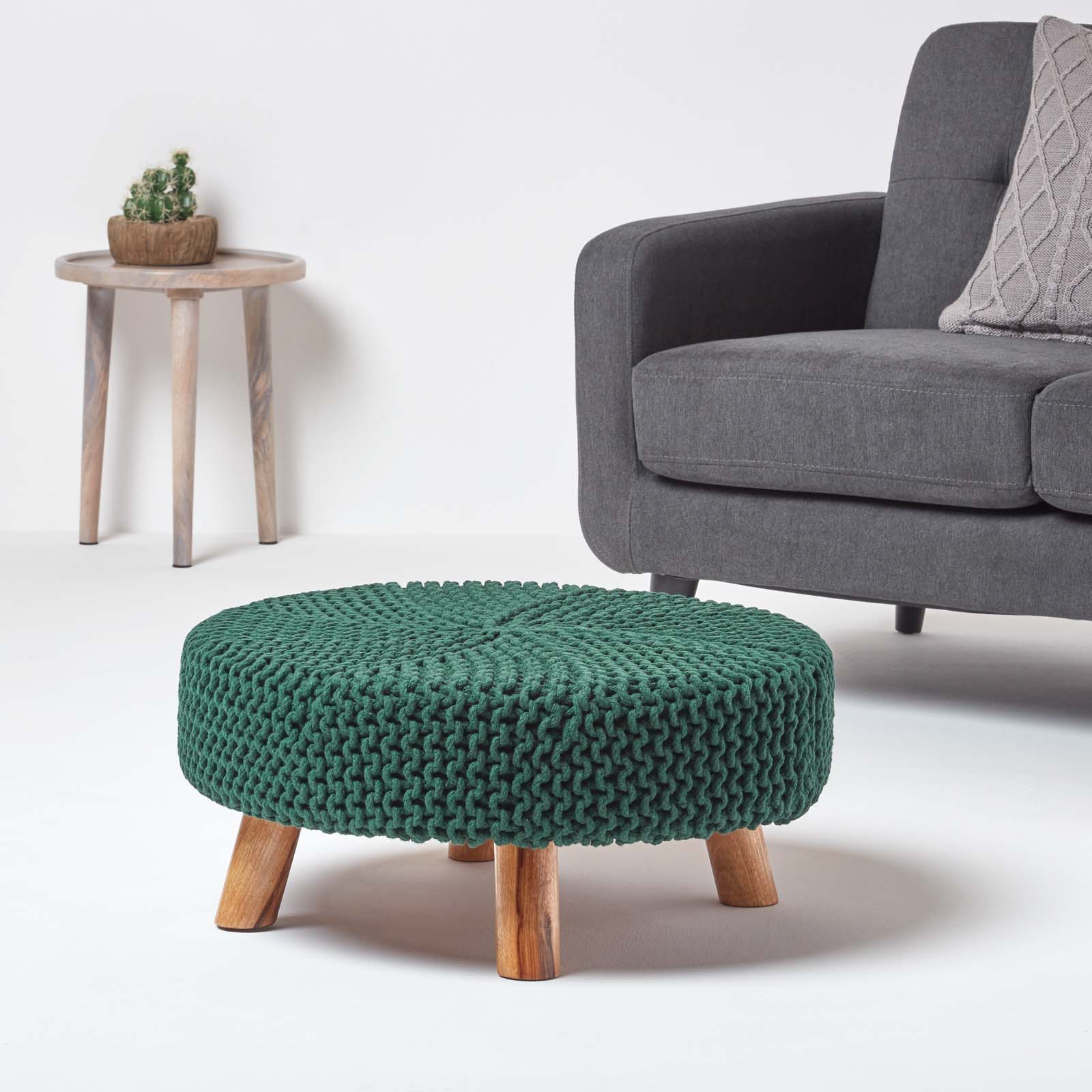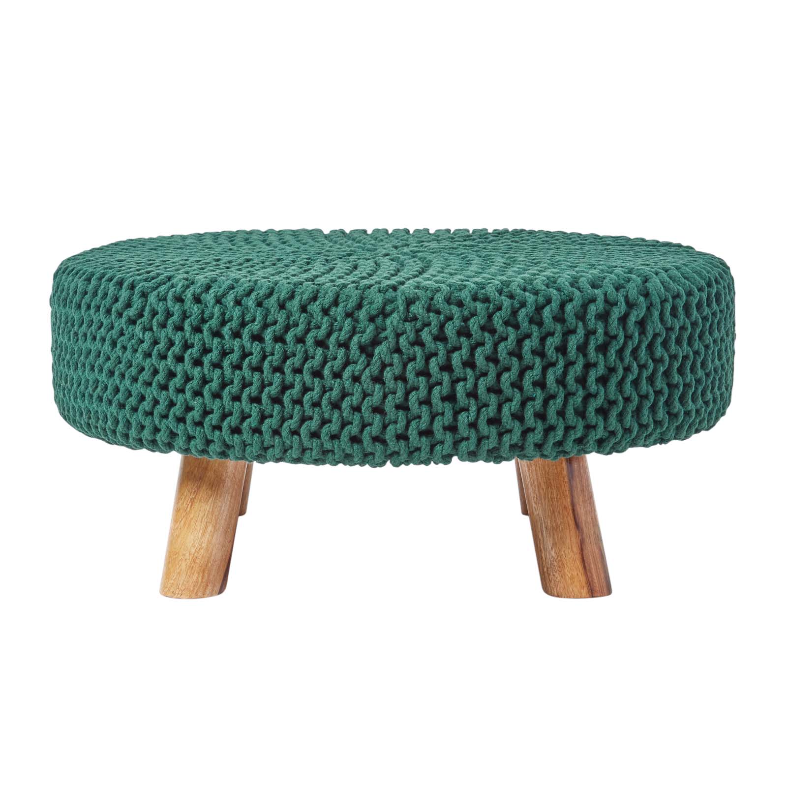 Homescapes Grand Pouf tressé en tricot et pieds en bois - Vert anglais