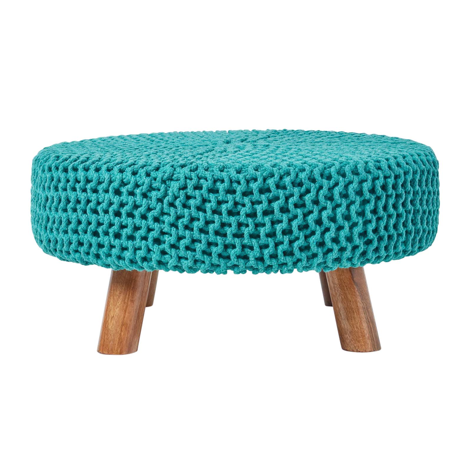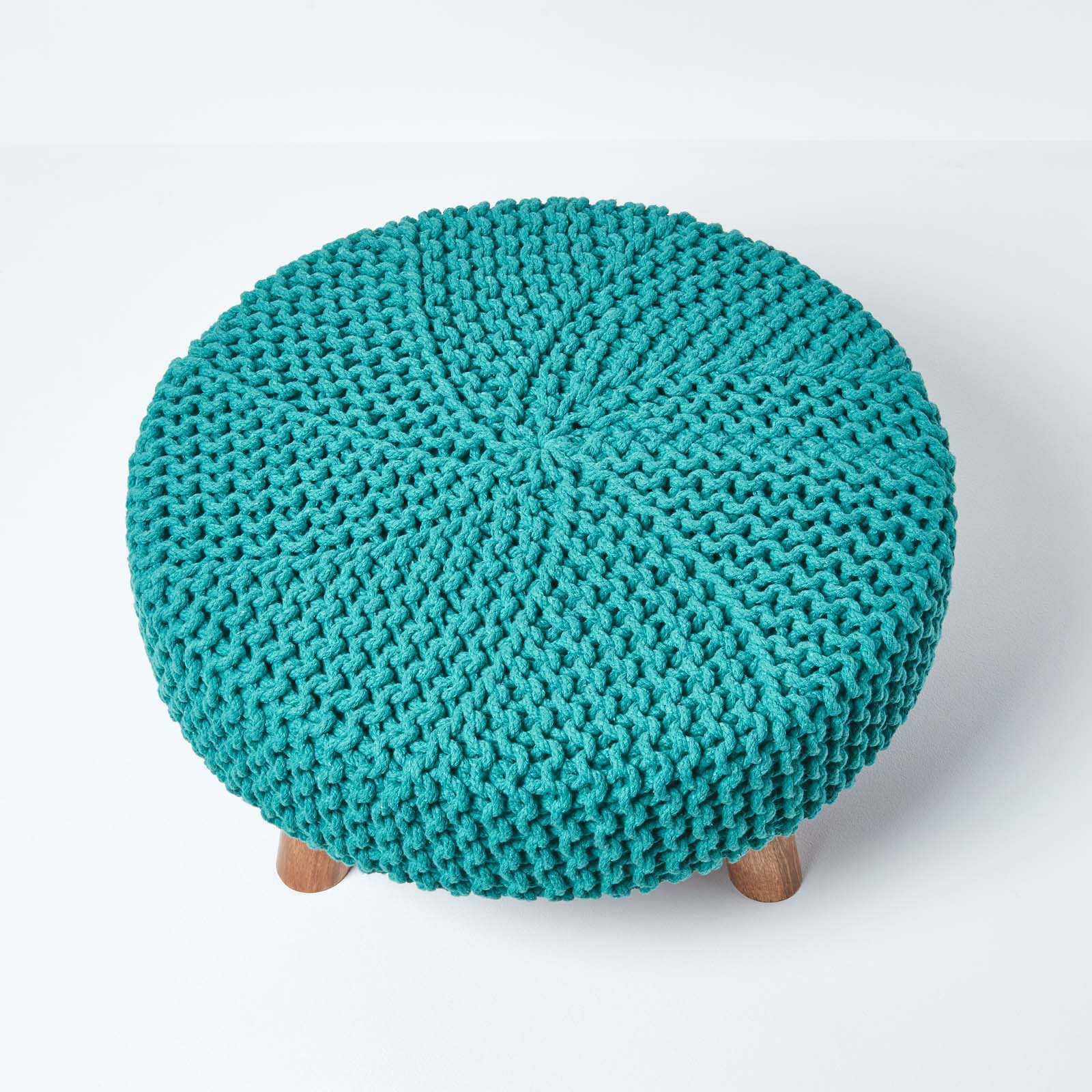 | Libellé | Homescapes Grand Pouf tressé en tricot et pieds en bois - Vert turquoise |