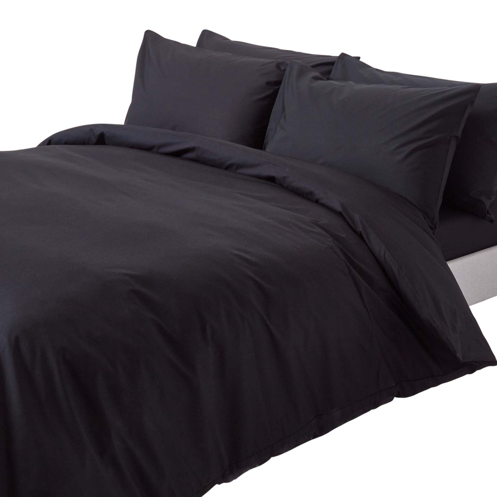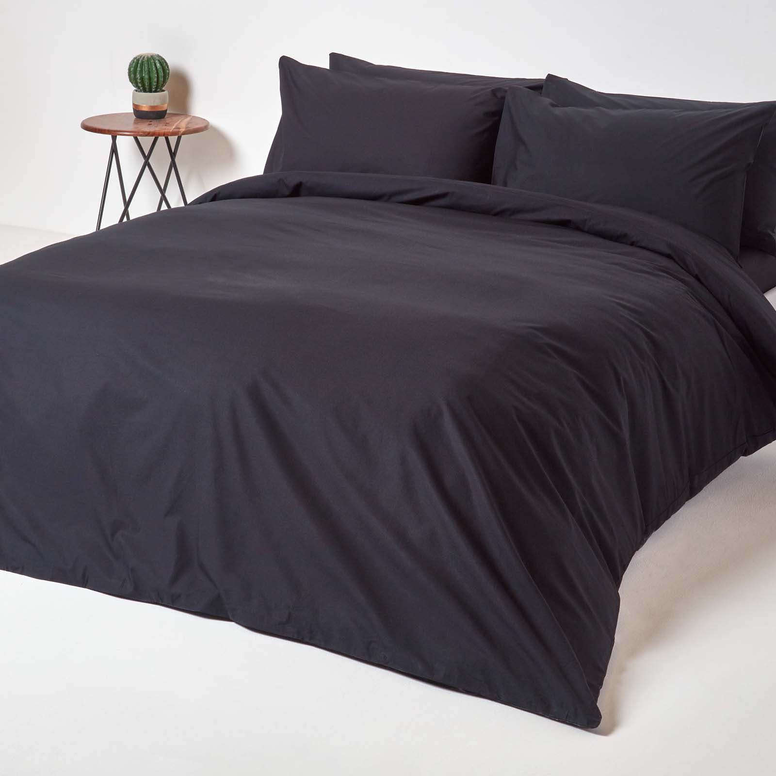 Homescapes Housse de Couette et taie d'oreiller en coton égyptien 200 fils Noir 200 x 200 cm