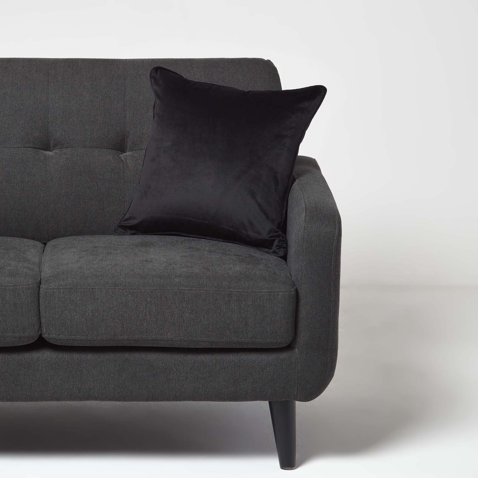 Homescapes Housse de coussin uni en velours noir, 46 x 46 cm