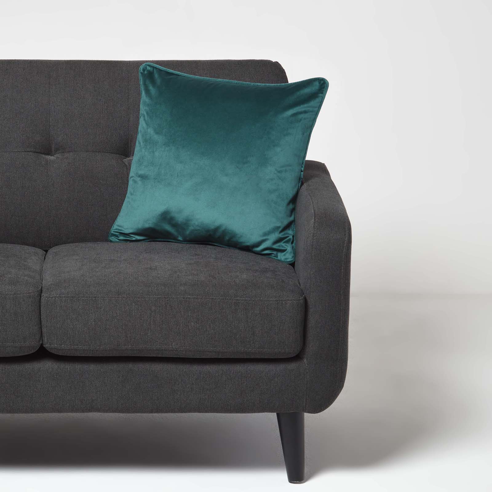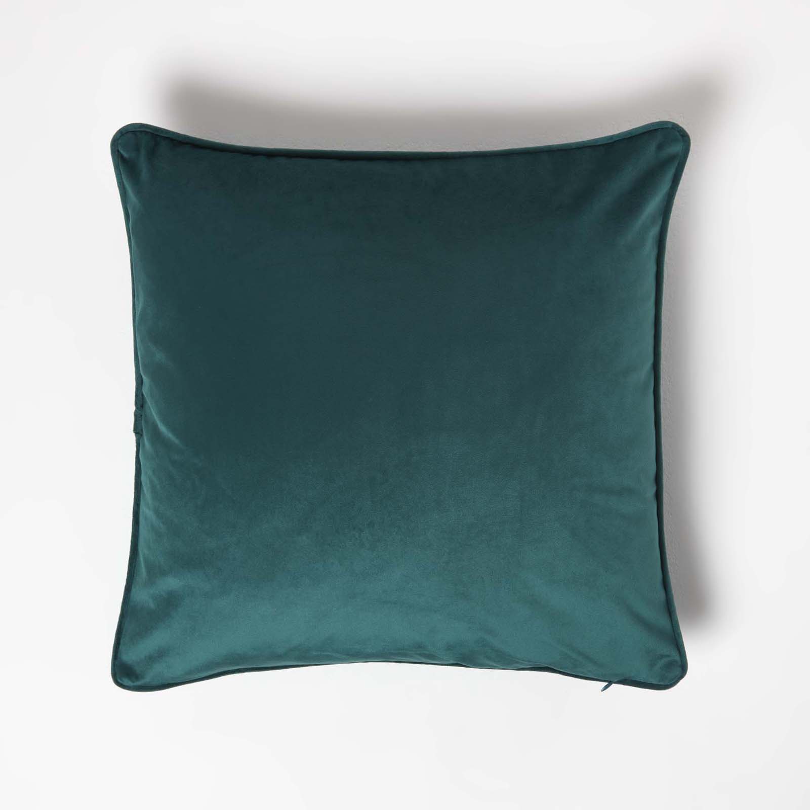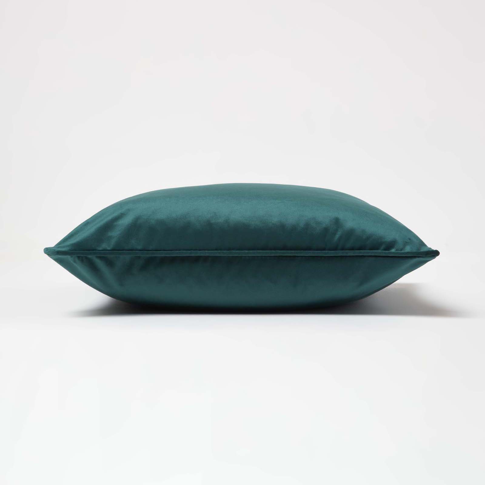 Homescapes Housse de coussin uni en velours vert foncé, 46 x 46 cm