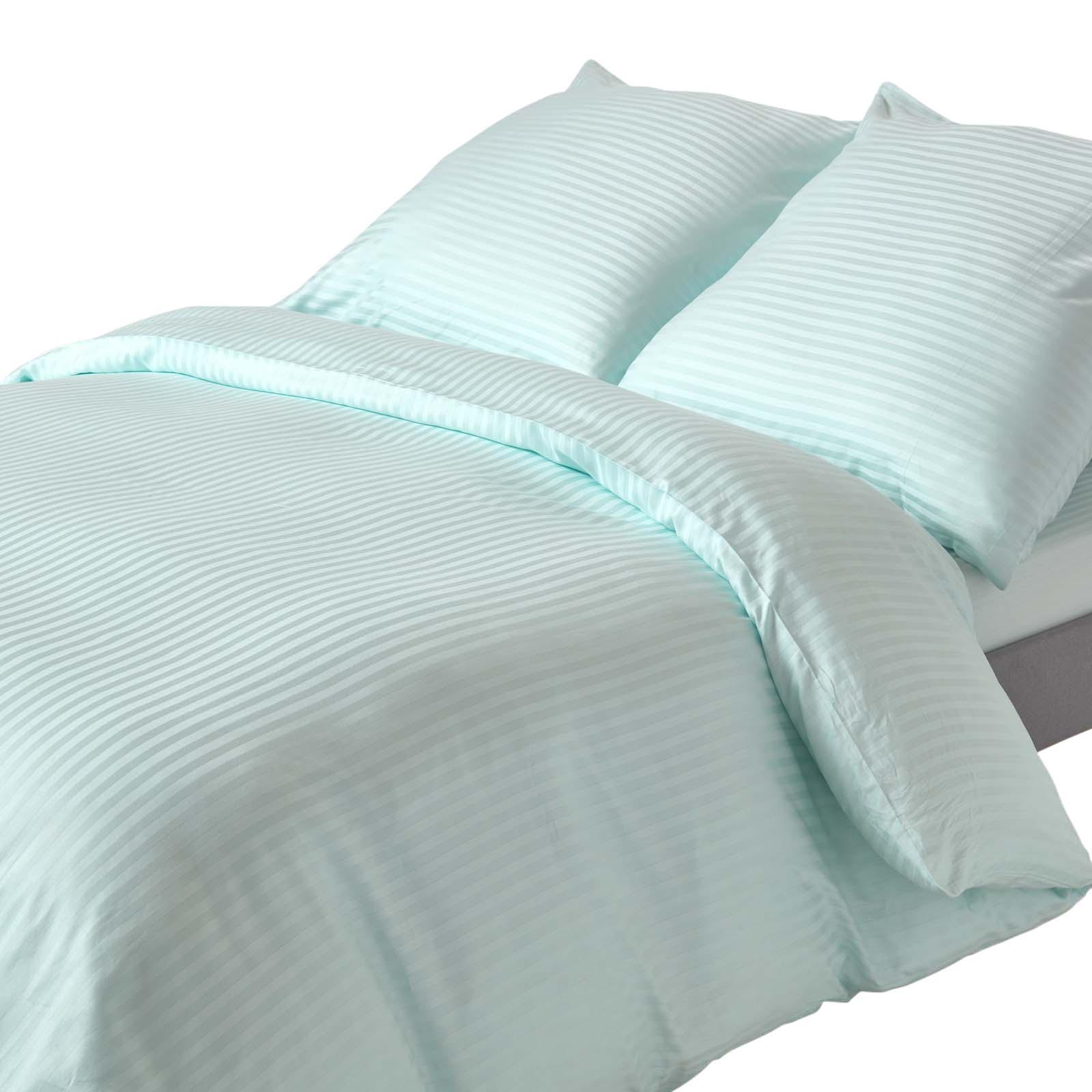 Homescapes Parure de lit Bleu 100% coton Egyptien 330 Fils 155 x 220 cm