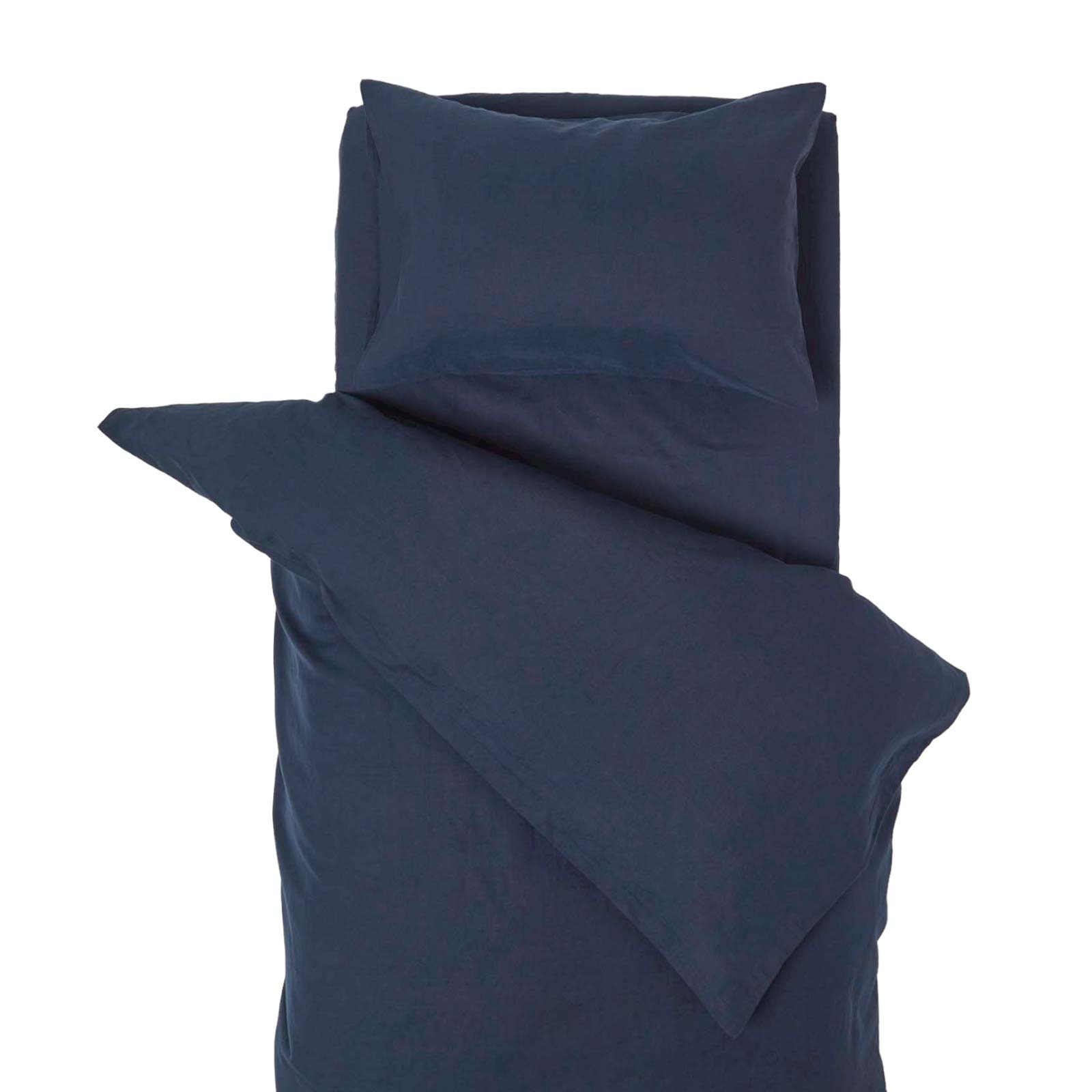 Homescapes Parure de lit enfant en lin lavé Bleu marine, 120 x 150 cm