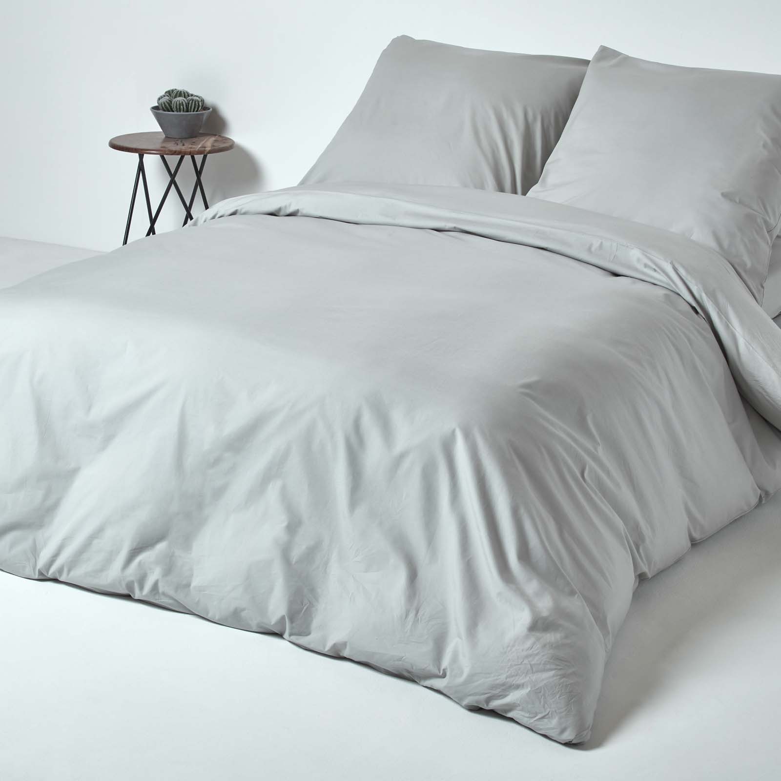 Homescapes Parure de lit Gris Argenté 100% coton Egyptien 200 Fils 240 x 220 cm
