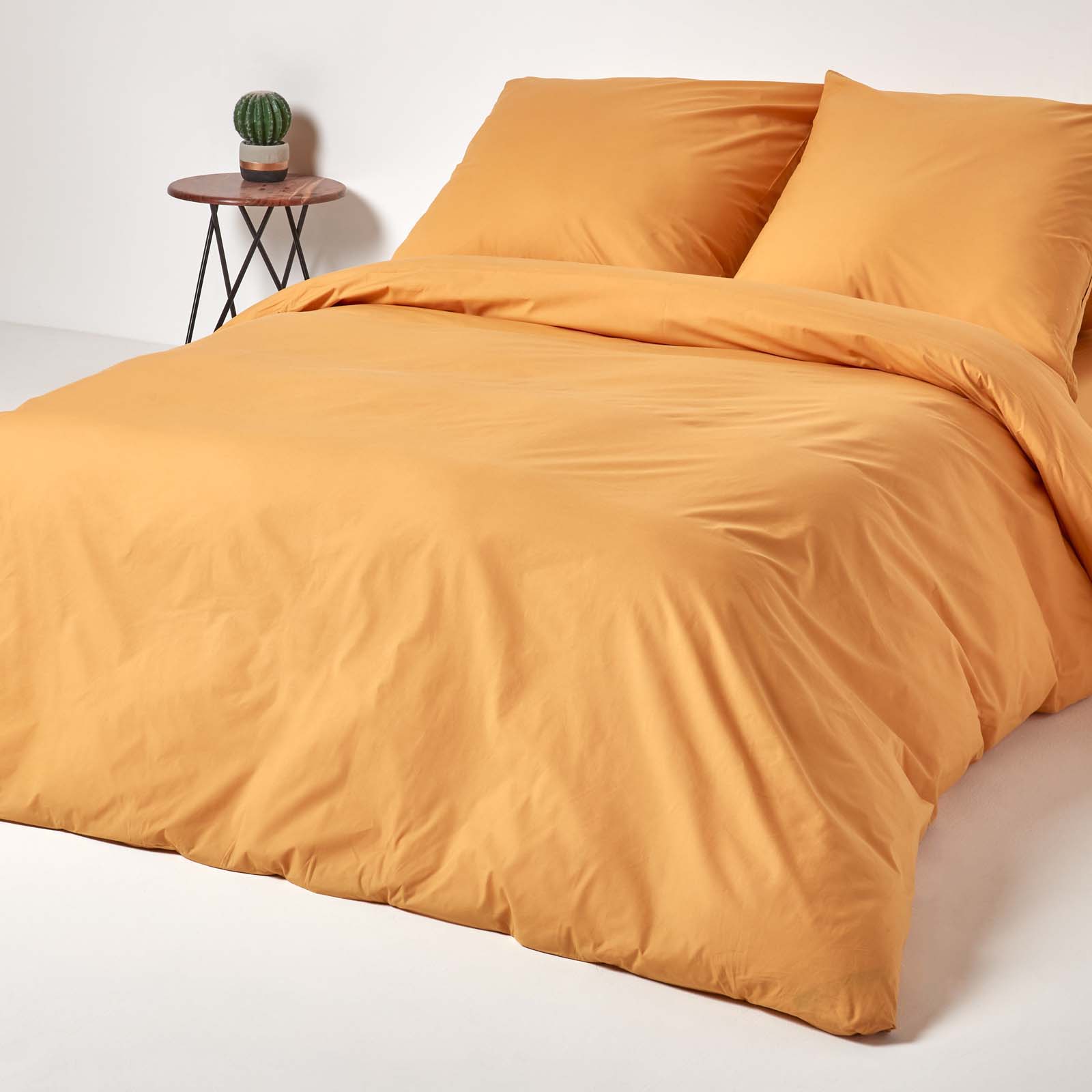 Homescapes Parure de lit Jaune Moutarde 100% coton Egyptien 200 Fils 155 x 200 cm