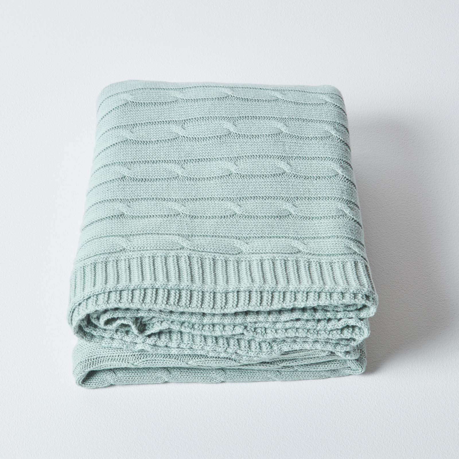 | Libellé | Homescapes Plaid en tricot en 100% coton Bleu clair, 150 x 200 cm |