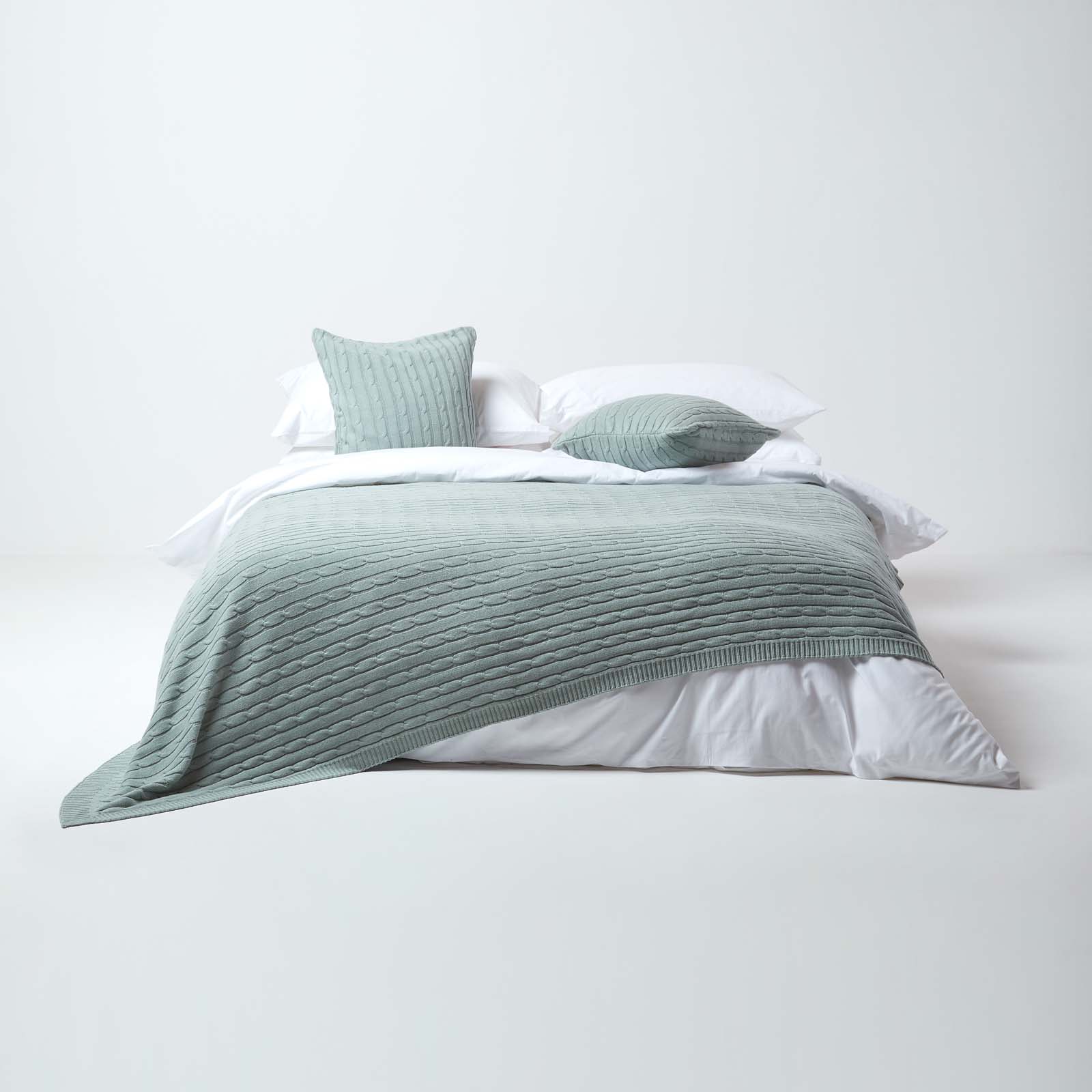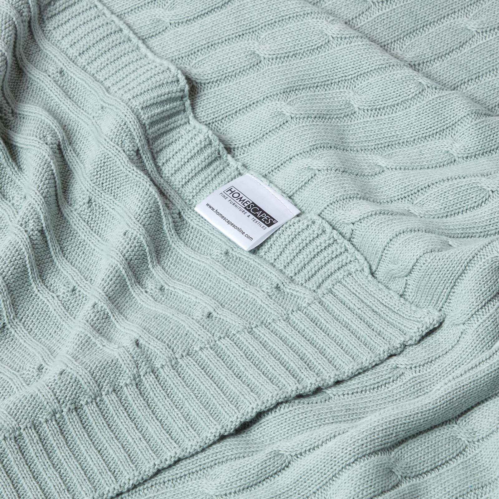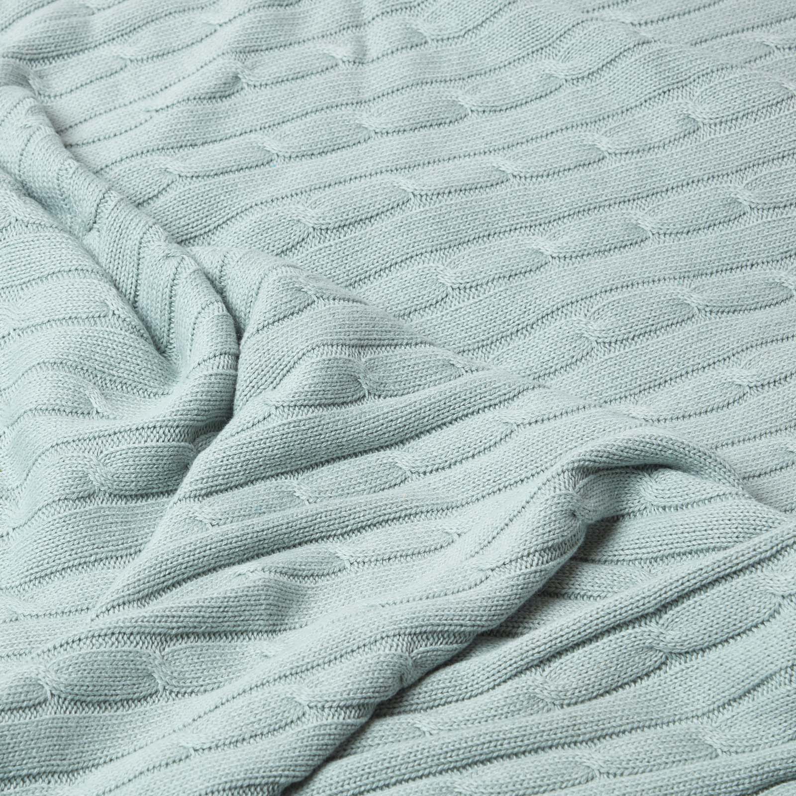 Homescapes Plaid en tricot en 100% coton Bleu clair, 150 x 200 cm