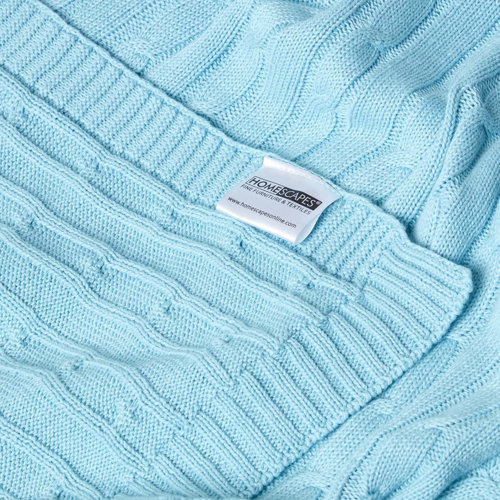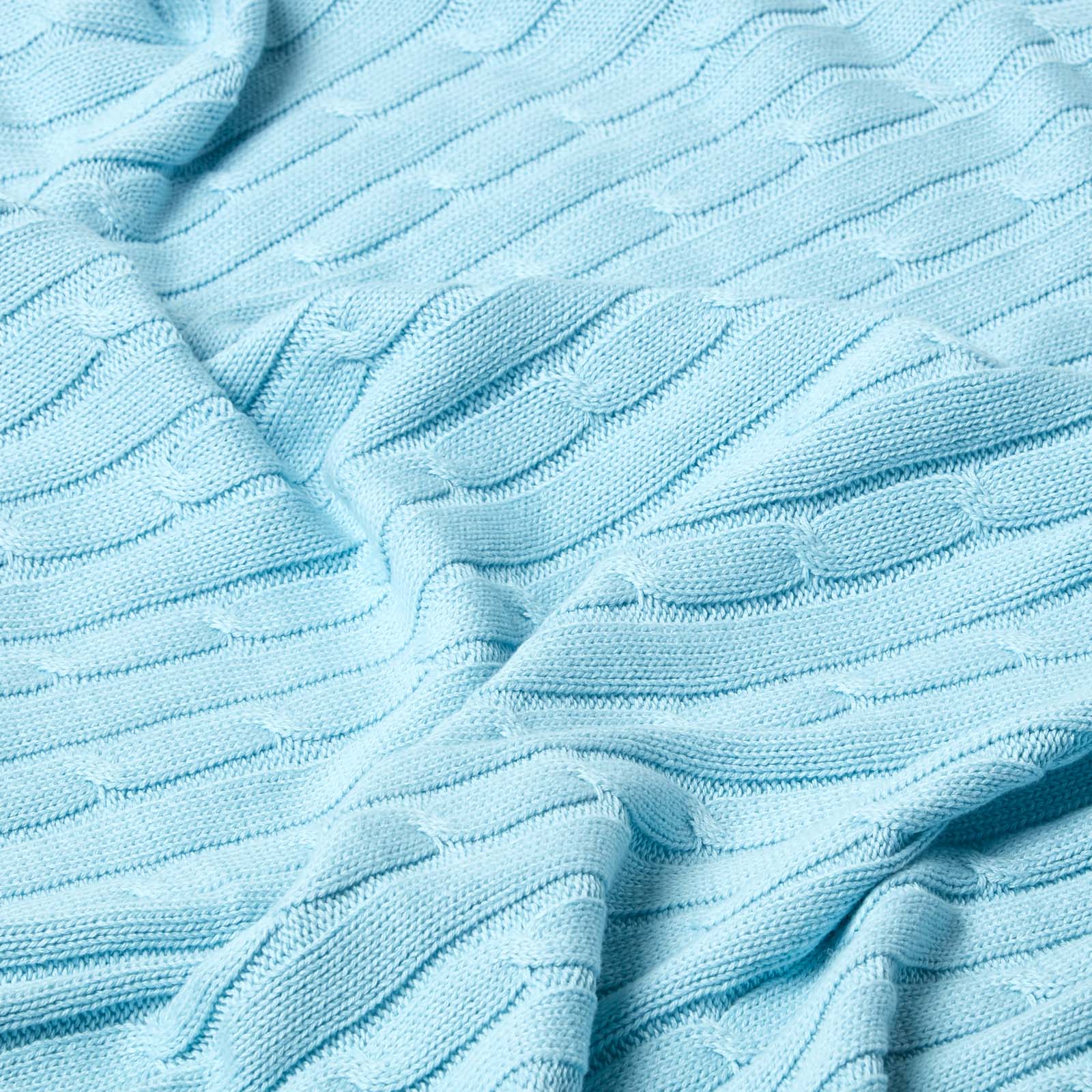 Homescapes Plaid en tricot en 100% coton Bleu pastel, 130 x 170 cm