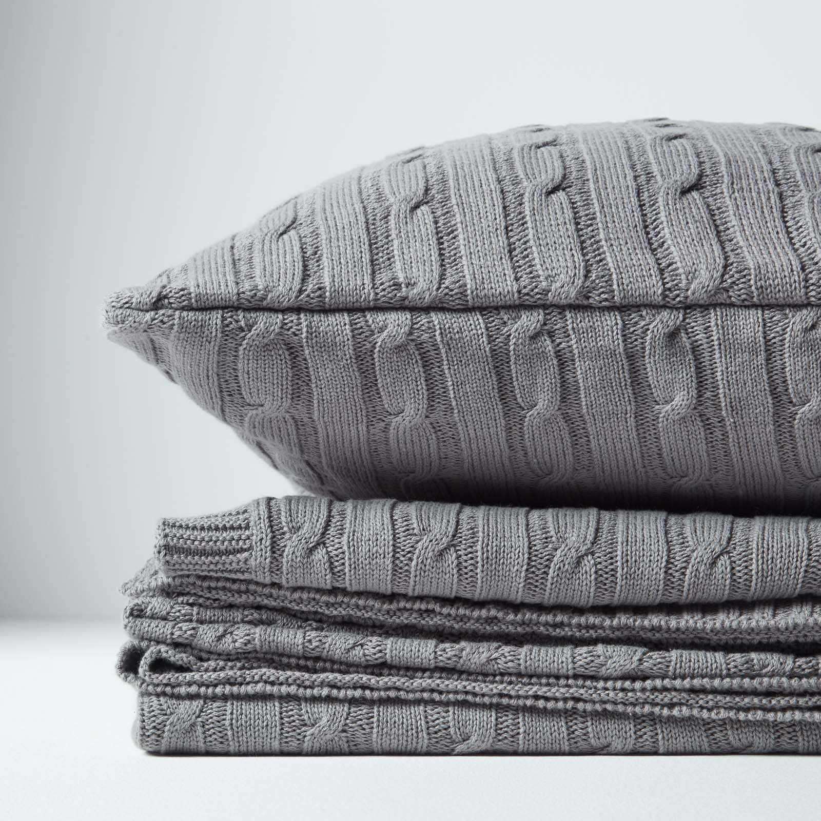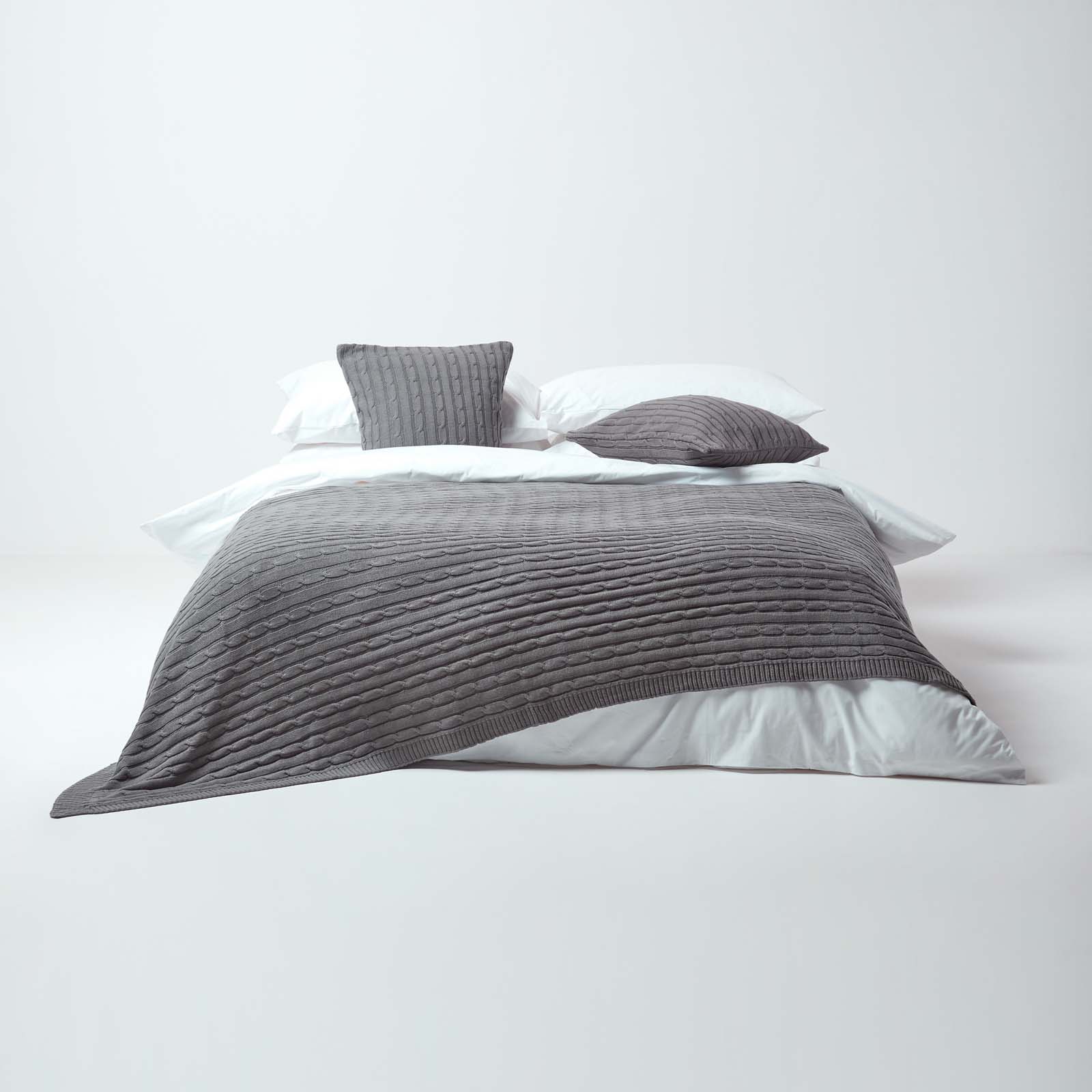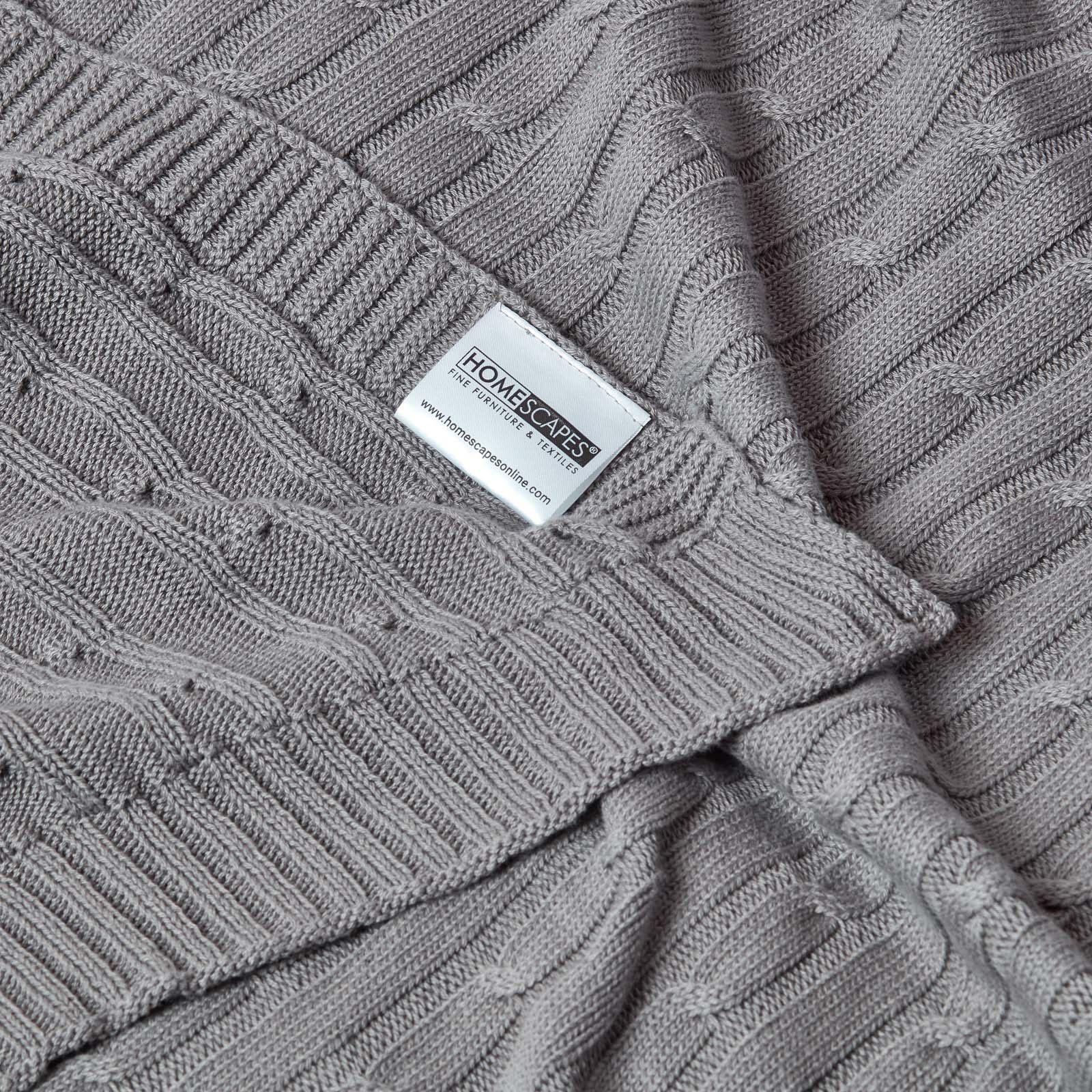 Homescapes Plaid en tricot en 100% coton Gris, 130 x 170 cm