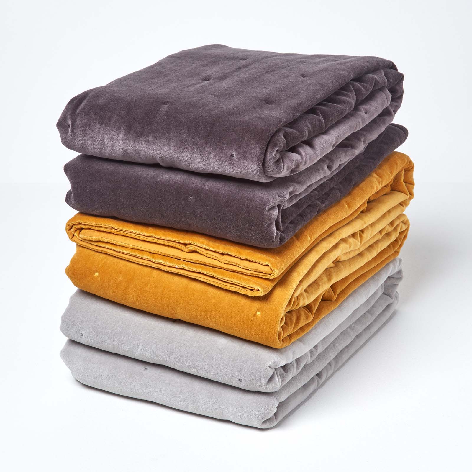 À la fois chic, doux et confortable, ce plaid en velours joue sur les effets de matière et donnera une allure chic à votre déco. Réalisé dans un velours de coton ultra doux et cosy, ce jeté de lit arbore une finition matelassée. Simplement étendu sur votre lit ou sur un fauteuil, ce plaid vous apportera de la chaleur et du confort. En 100% coton, ce plaid en velours enveloppera votre chambre ou votre salon de douceur et d'élégance. Son garnissage léger en polyester apportera une touche de chaleur supplémentaire à votre parure de lit. Le revers de ce plaid possède un revêtement en coton et sur le dessus, les piqûres en point contrastent avec le tissu en velours pour un effet capitonné. Les housses de coussin et le coussin rond assortis sont également disponibles sur notre boutique Homescapes (vendus séparément). Ce plaid est disponible en de nombreux coloris pour s'accorder à tous les types de décoration.
