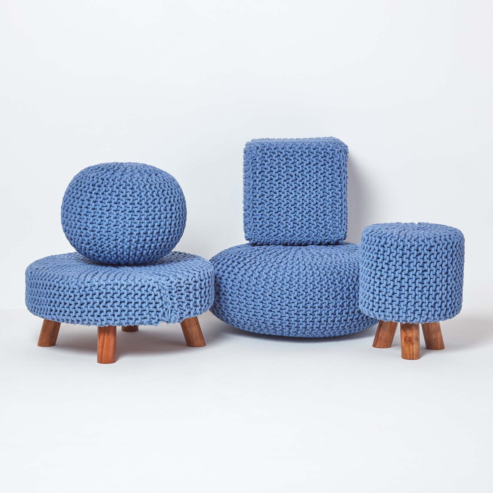 | Libellé | Homescapes Pouf en tricot rond - Bleu |