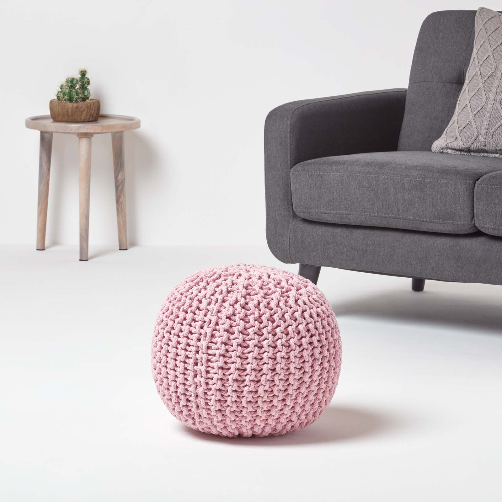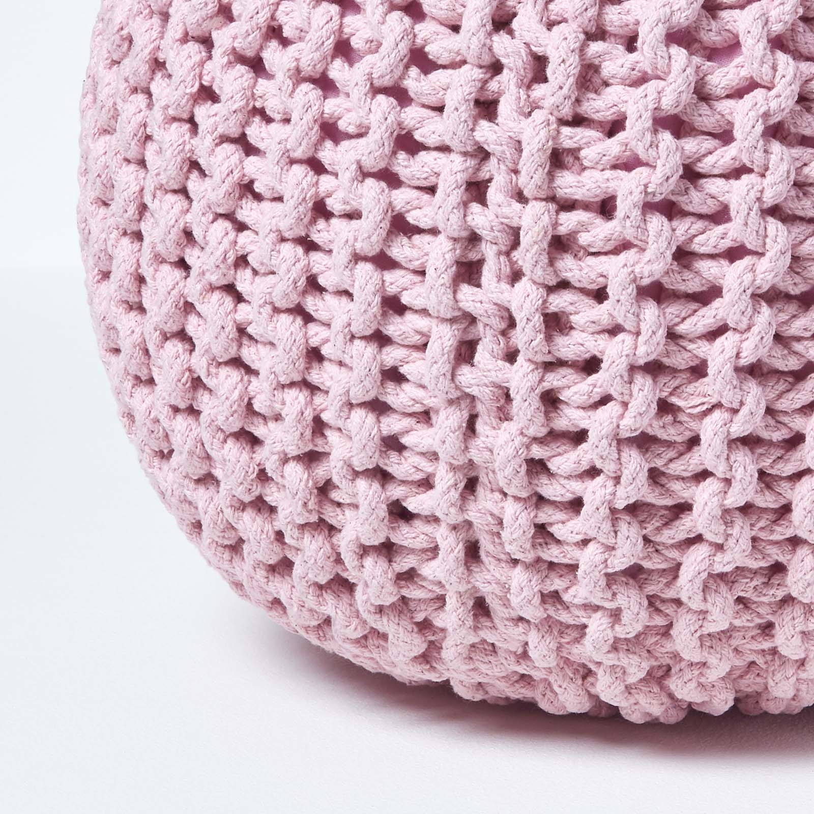 Homescapes Pouf en tricot Rond Coloris Rose Pastel 35 x 40 cm