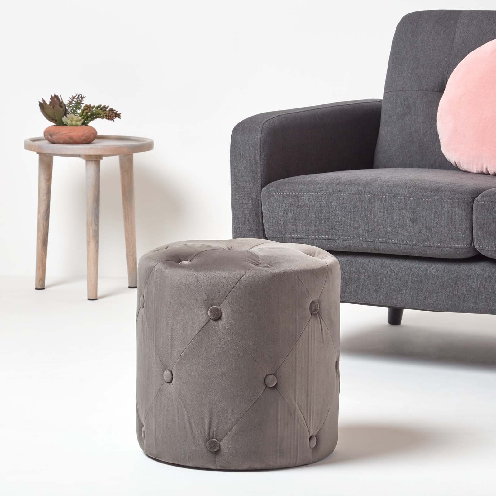 | Libellé | Homescapes Pouf rond en velours capitonné Windsor, Gris |